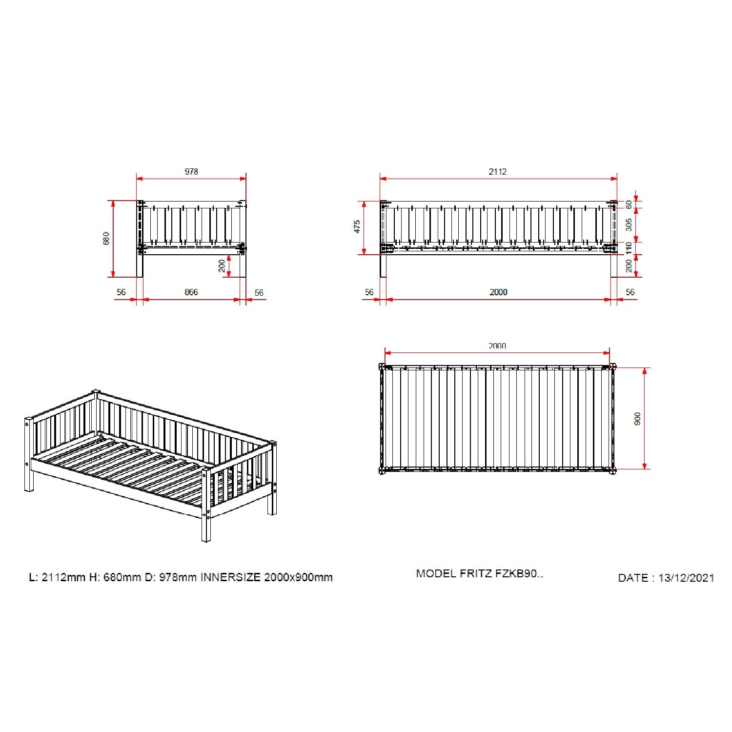 • Lengte 2112 mm x Breedte 982 mm x Hoogte 680 mm