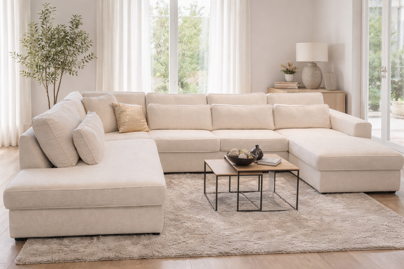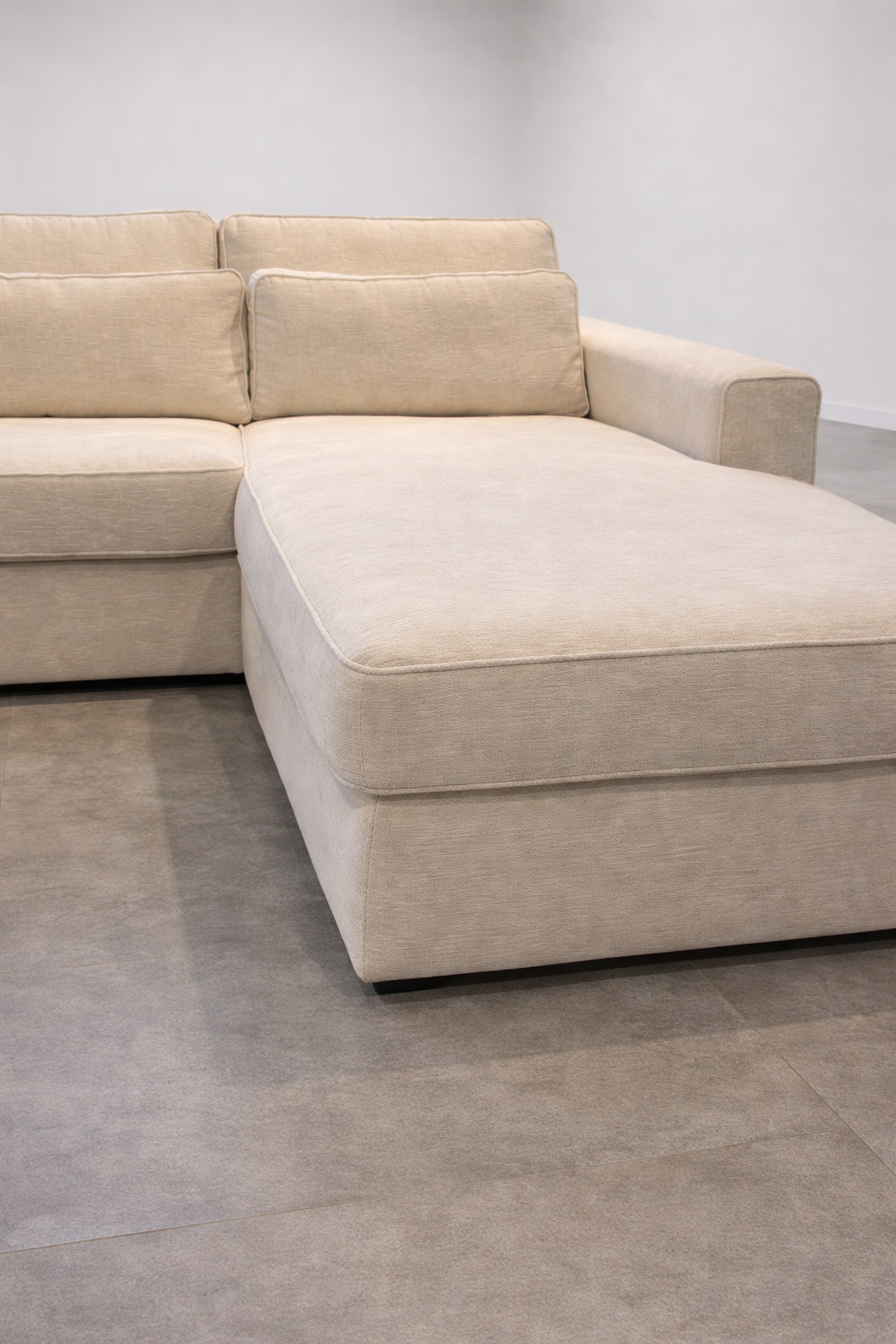 Deze elegante hoekzetel vormt het hart van een serene living. De zachte, lichte stoffering en uitnodigende longchair nodigen uit tot ontspannen momenten, terwijl het tijdloze ontwerp moeiteloos opgaat in een interieur met natuurlijke tinten. Dankzij de royale zitdiepte en comfortabele kussens biedt deze zetel een heerlijk loungegevoel, zonder in te boeten op stijl.
