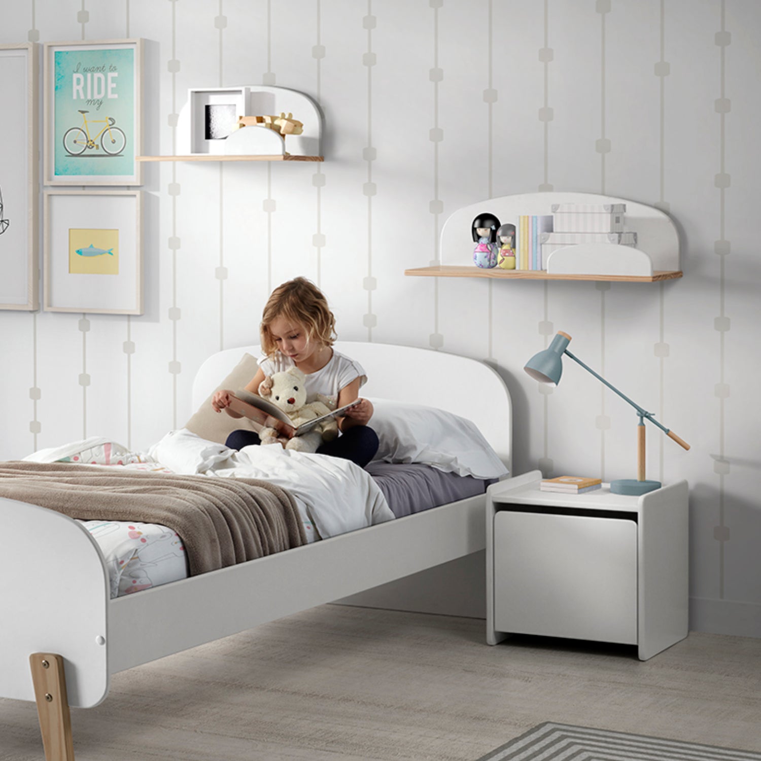 Deze wandplank is meer dan alleen praktisch – het is een subtiel stijlelement dat sfeer brengt in de kinderkamer. Met de afgeronde vormen en zachte kleuren oogt het vriendelijk en eigentijds. Perfect voor een nachtlampje, een lievelingsboek of dat ene knuffeltje dat altijd dichtbij moet zijn. Door het compacte formaat en de stevige constructie past het moeiteloos boven elk bed of bureautje. Klein in formaat, groots in charme.