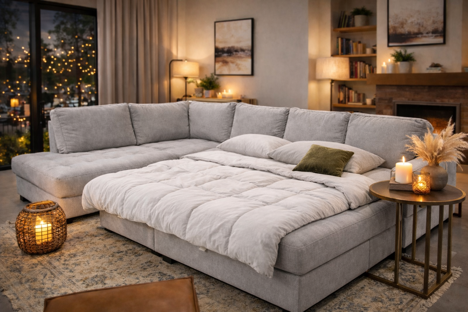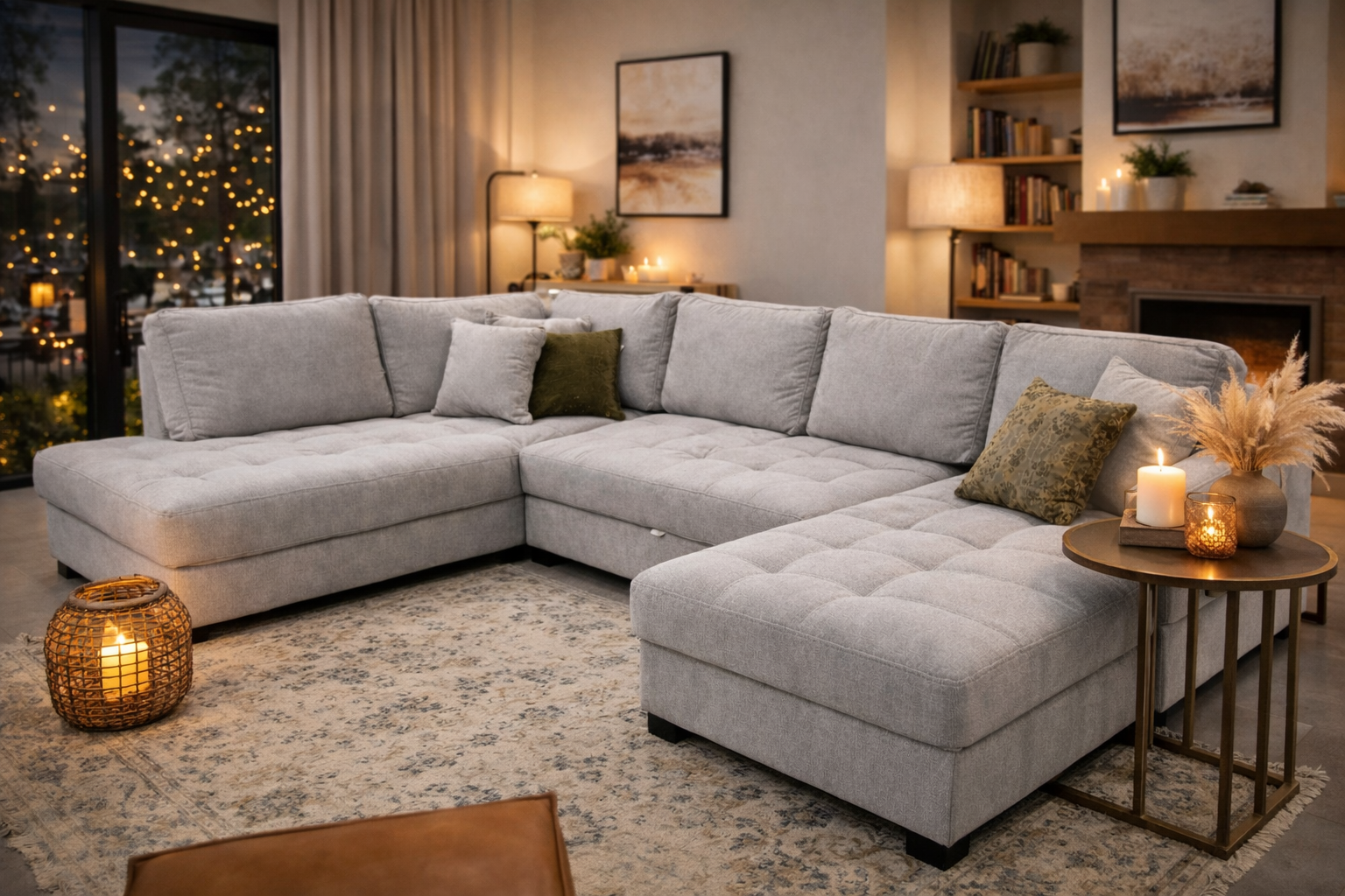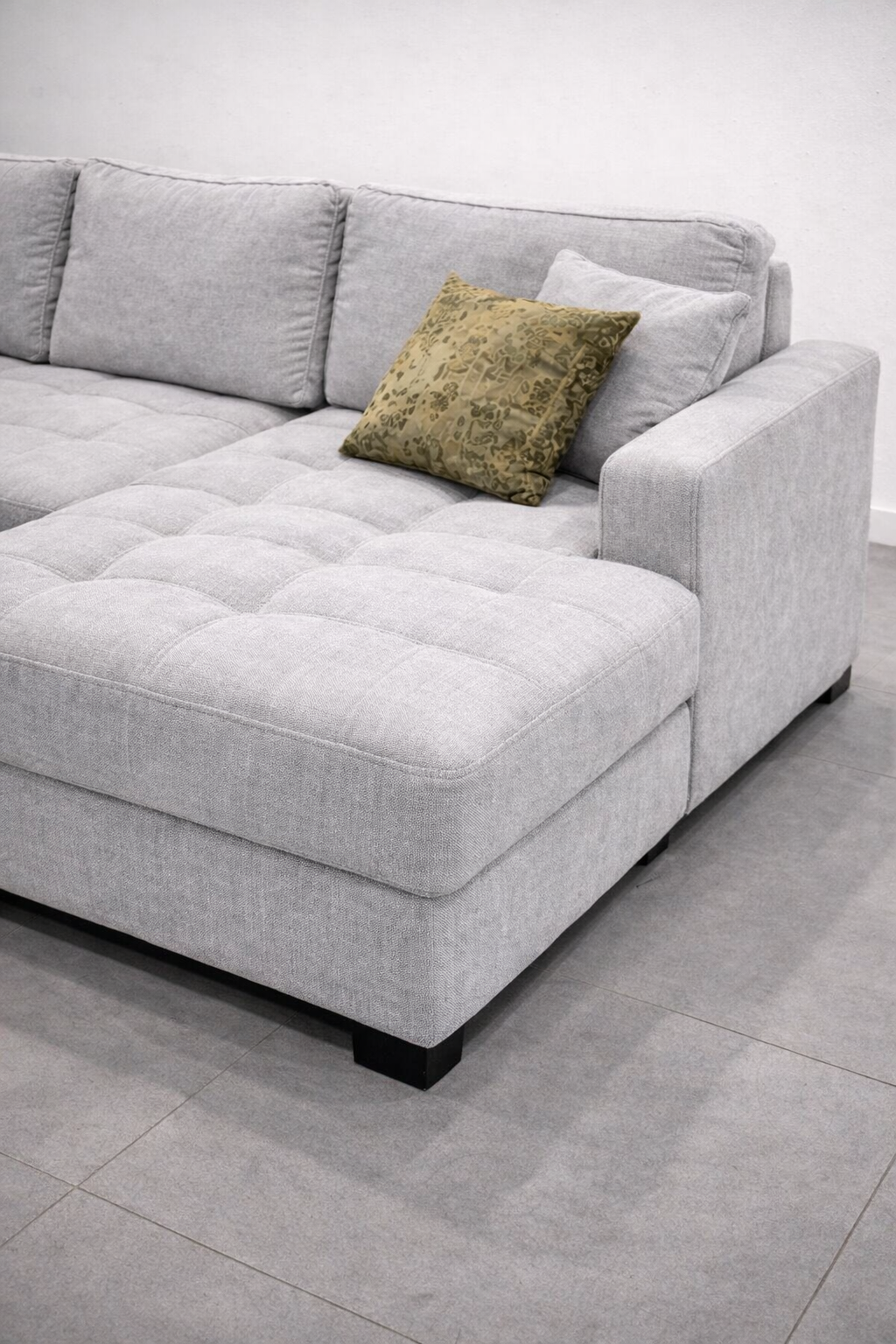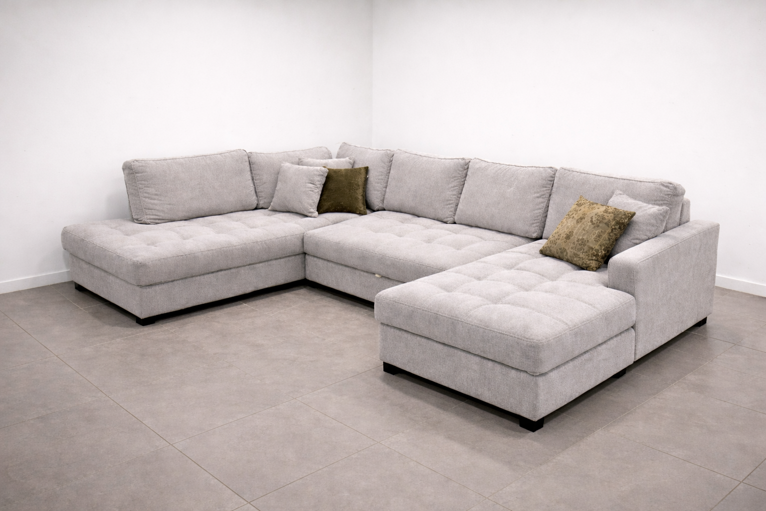 Deze moderne hoekzetel in lichtgrijze stof is uitgerust met een praktische slaapfunctie. In enkele eenvoudige bewegingen creëer je een ruim en vlak ligoppervlak. Ideaal voor dagelijks comfort én als extra bed voor gasten. Afgewerkt met zachte bekleding en een stevig zitcomfort.