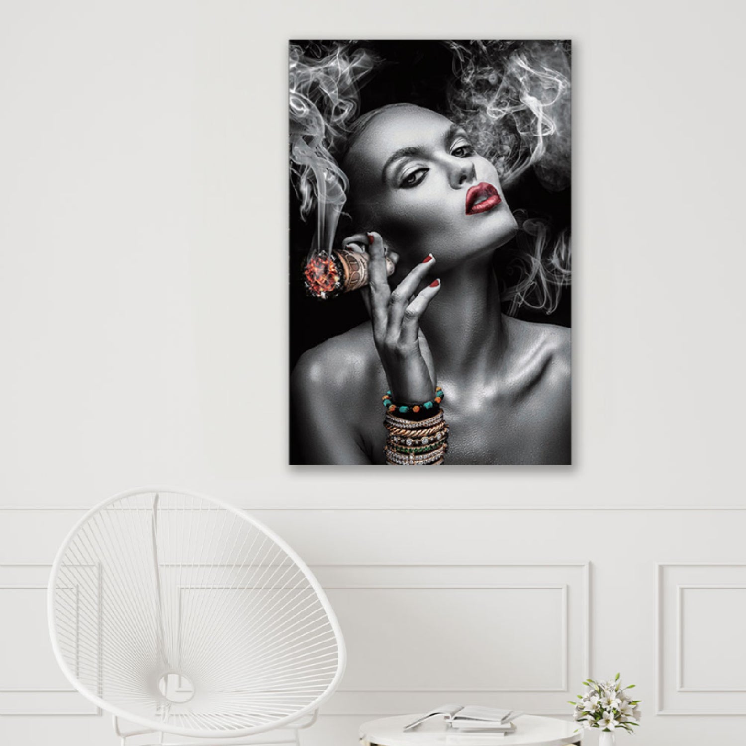 Een onweerstaanbare mix van luxe en provocatie: dit kunstwerk van 81x121 cm vangt