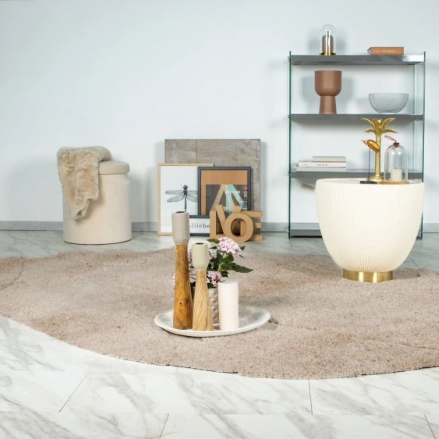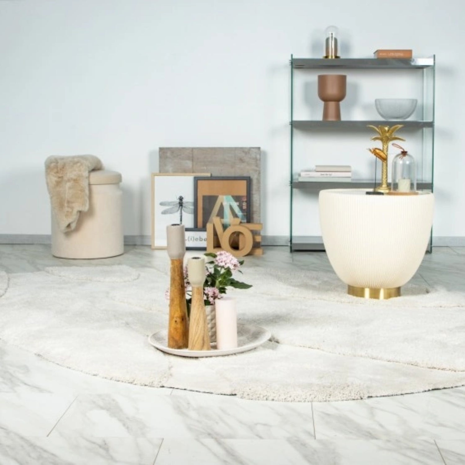 Dit vloerkleed trekt onmiddellijk de aandacht dankzij zijn unieke en speelse vorm,