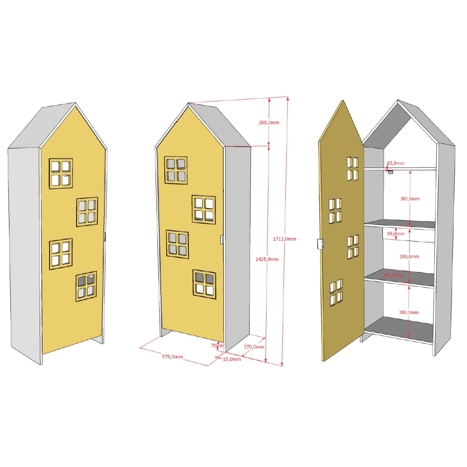 Dit speelse kastje neemt je mee naar een charmant straatje waar kleine, sfeervolle huisjes staan die lijken te wachten op hun bewoners. Met een elegante puntdakstructuur en uitgesneden raampjes die op speelse wijze verspreid zijn over het deurtje, krijgt het meubelstuk een vrolijke en toch stijlvolle uitstraling. Stel je eens voor dat je het deurtje opent en binnenin de kleine kamers van het huis ontdekt, perfect om je favoriete spulletjes, boeken of herinneringen in op te bergen. Dit kastje vertelt een verhaal, eentje van gezelligheid en karakter, en brengt daarmee een bijzondere sfeer in iedere kamer waar het staat.