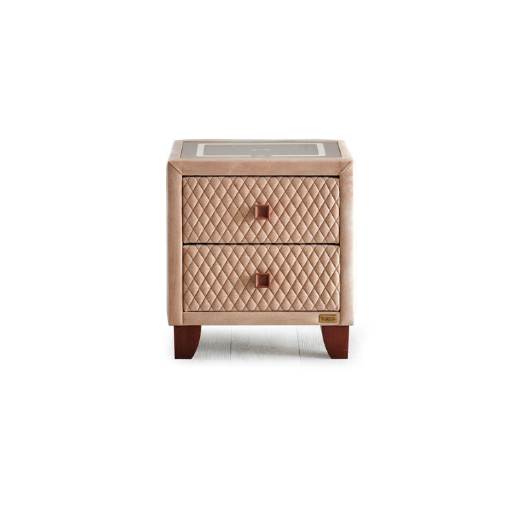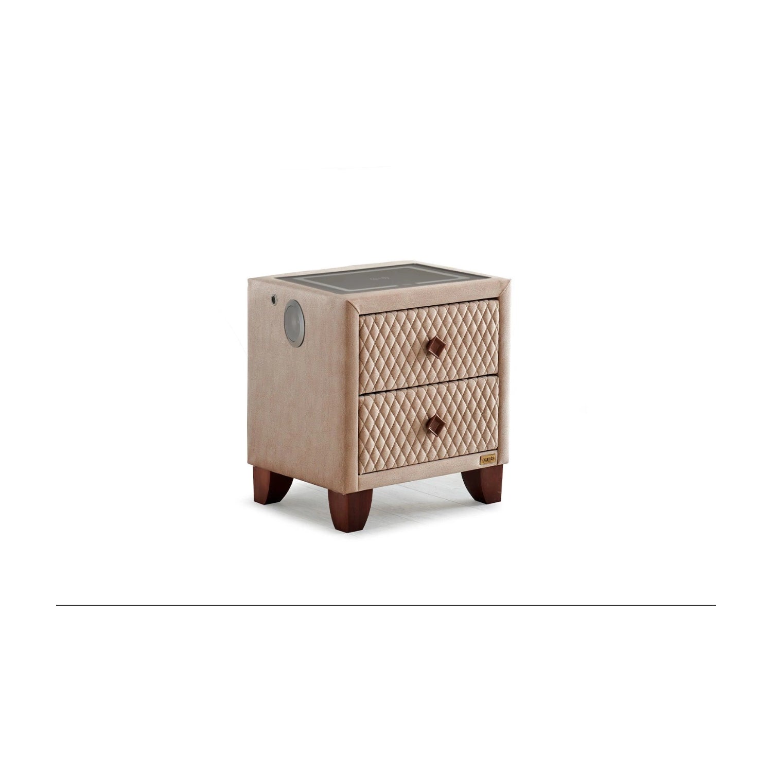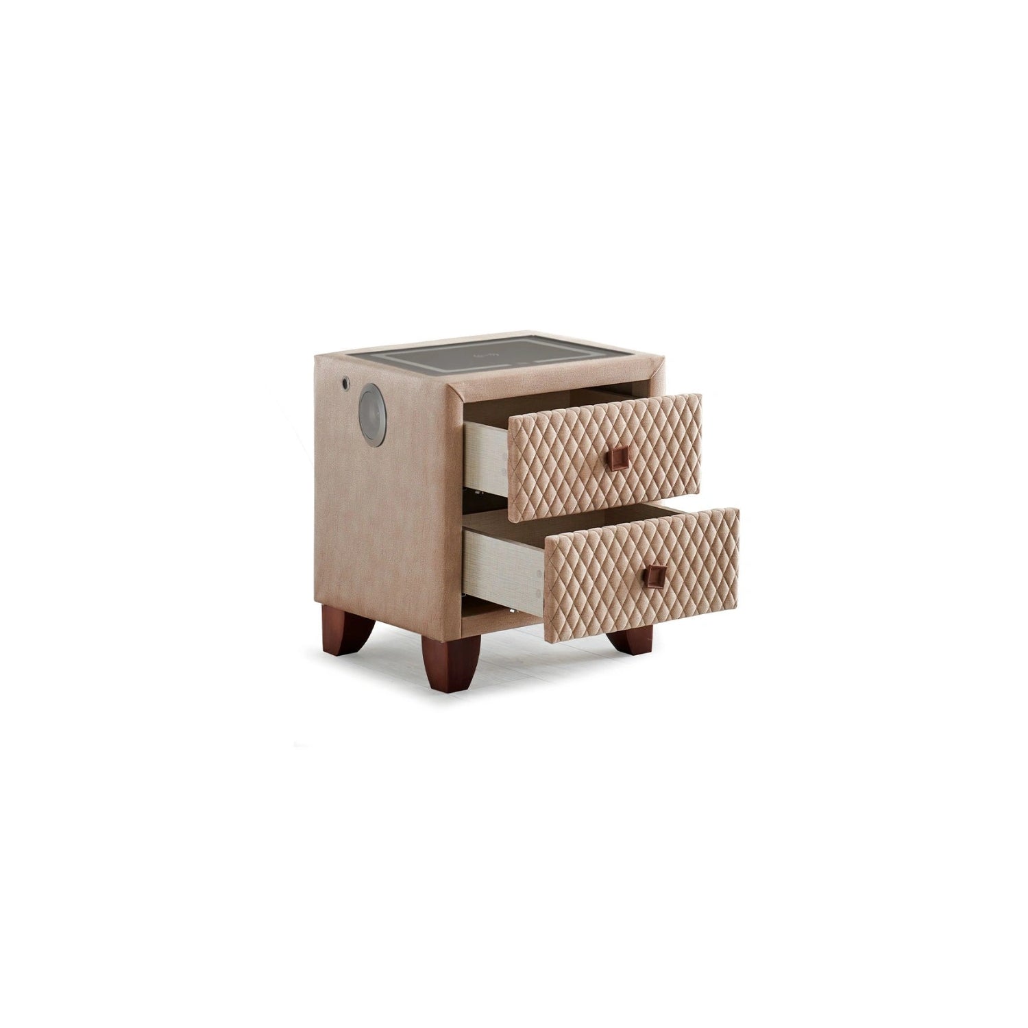 Dit elegante nachtkastje vangt meteen de aandacht met zijn geraffineerde uitstraling,