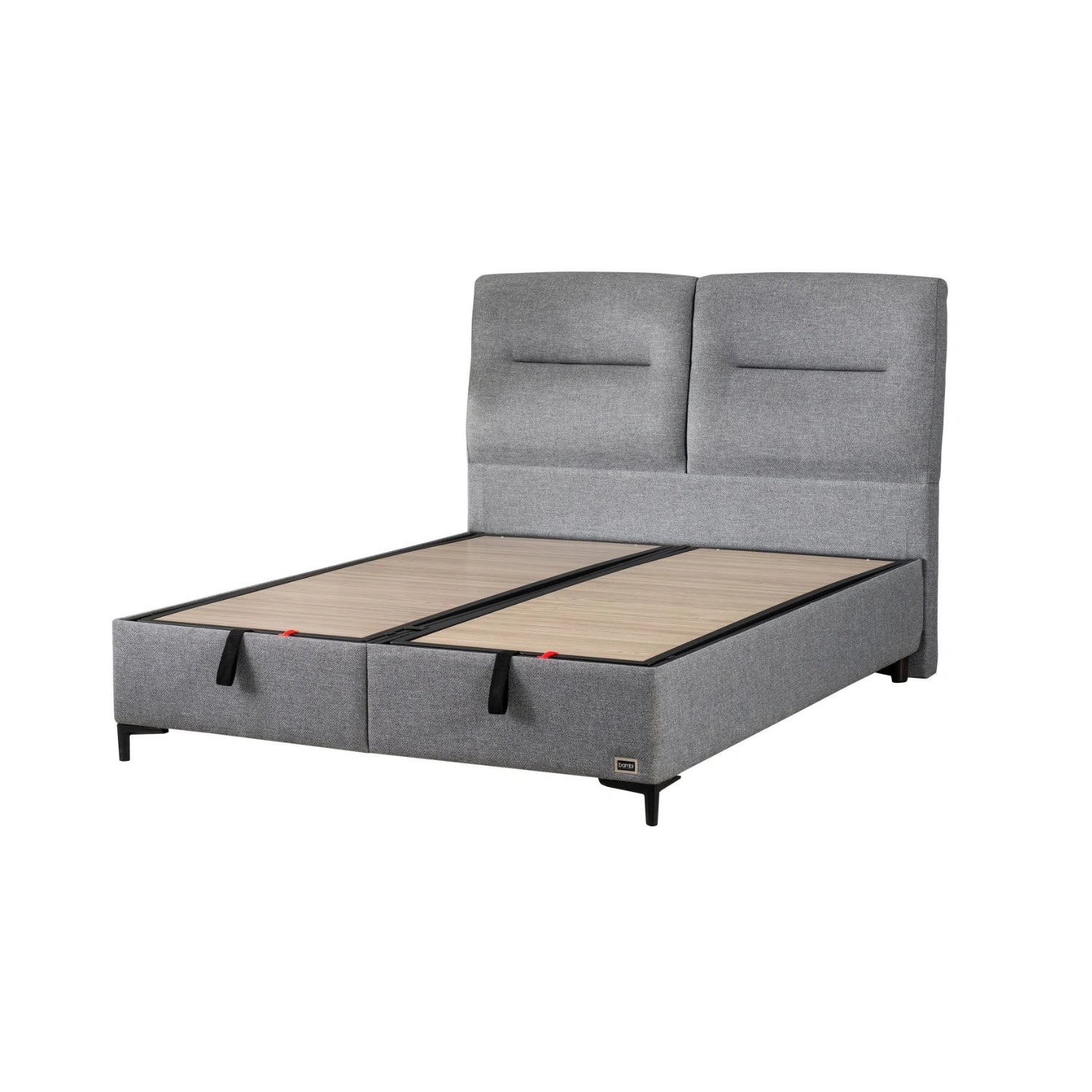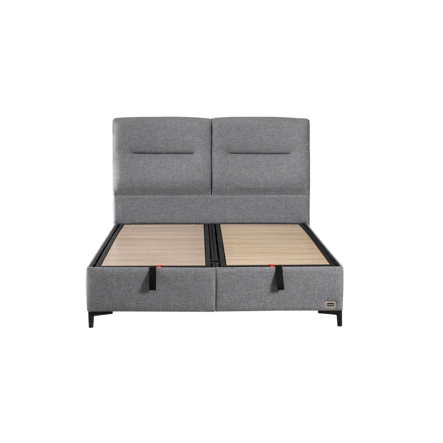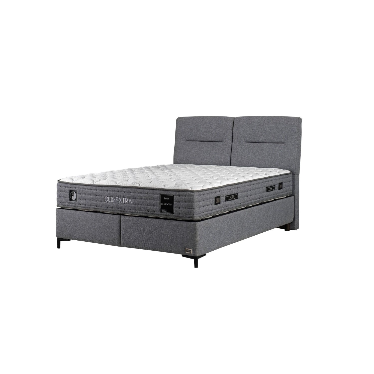 gekleed in zacht, stijlvol grijs textiel dat perfect aansluit bij elke slaapkamerstijl.