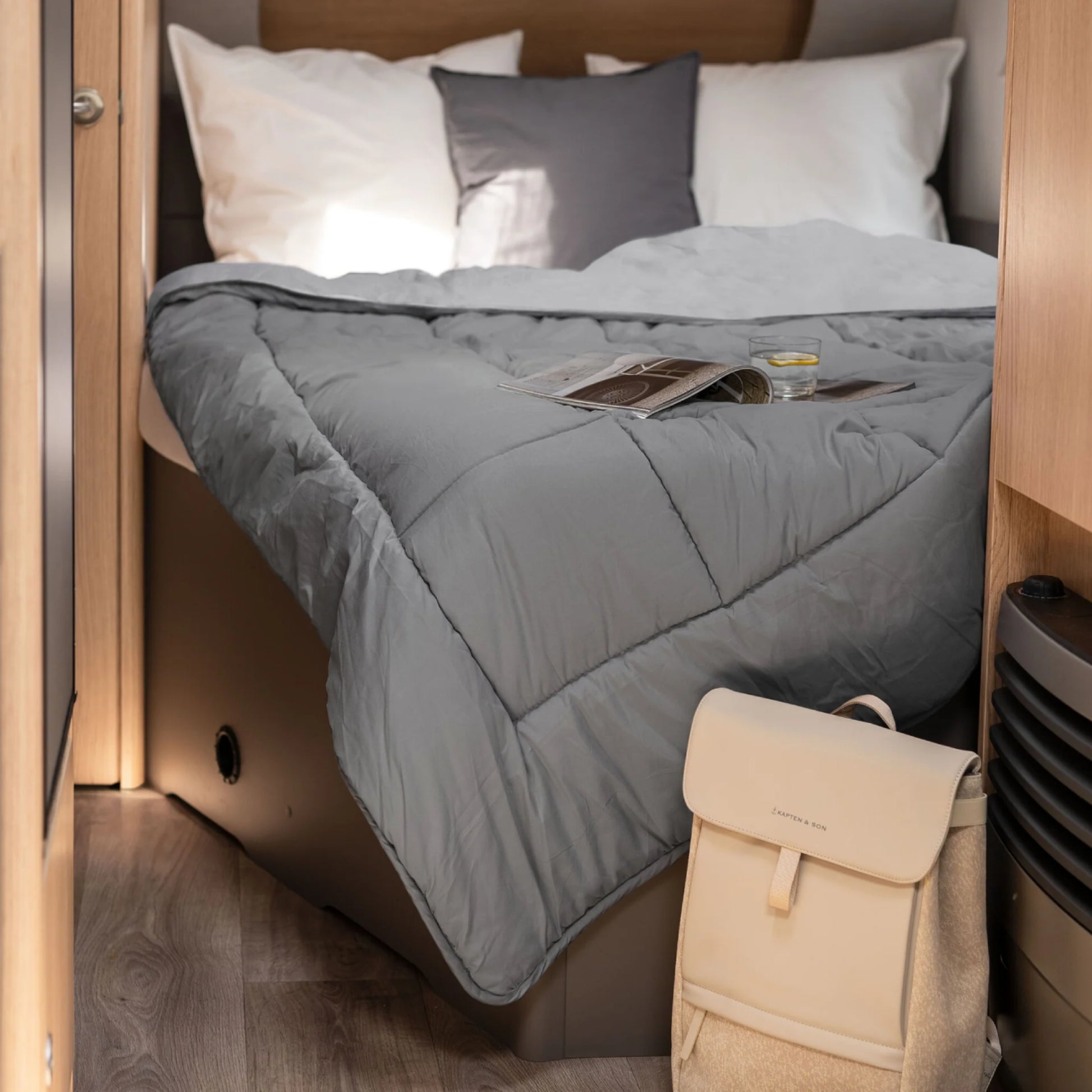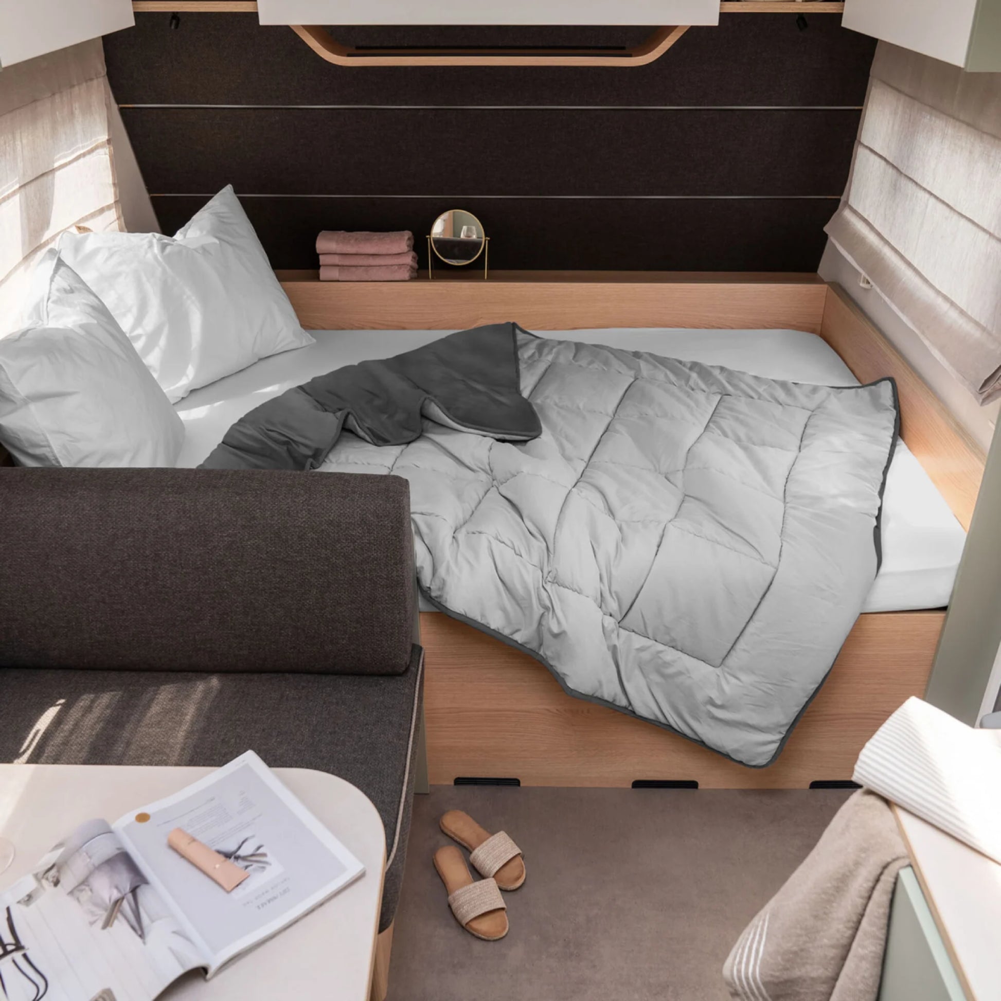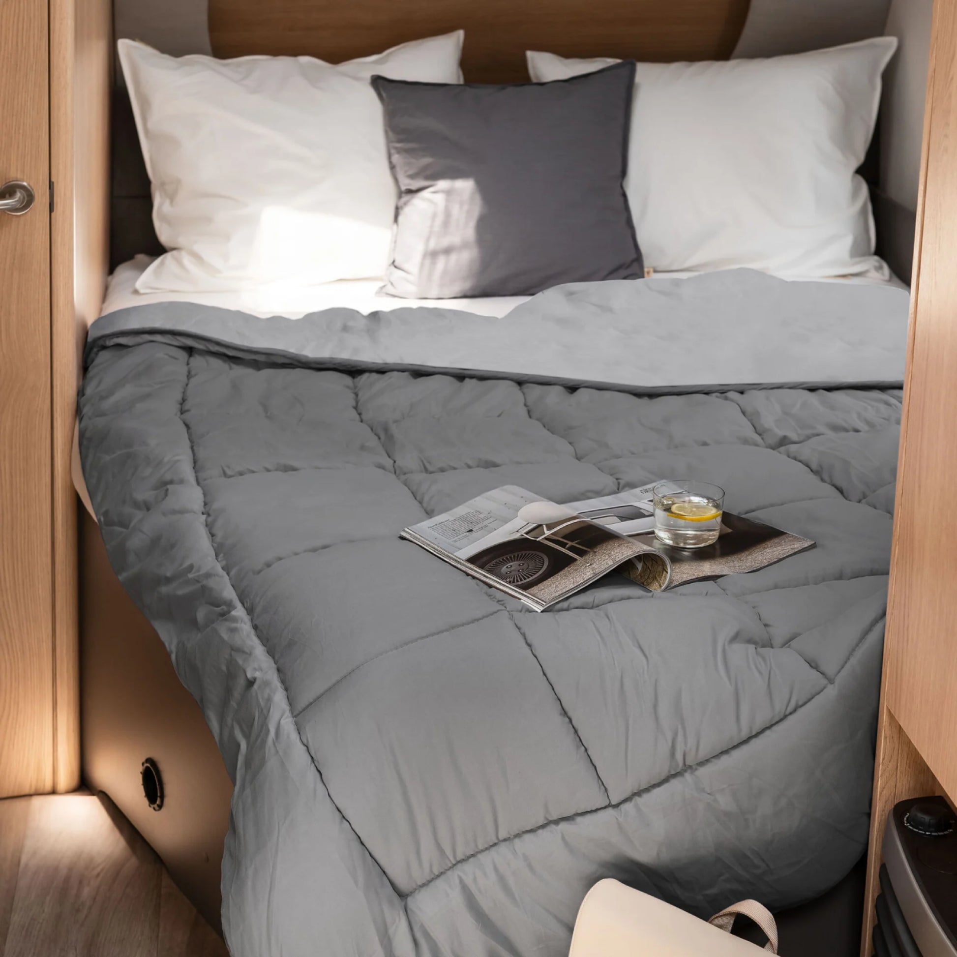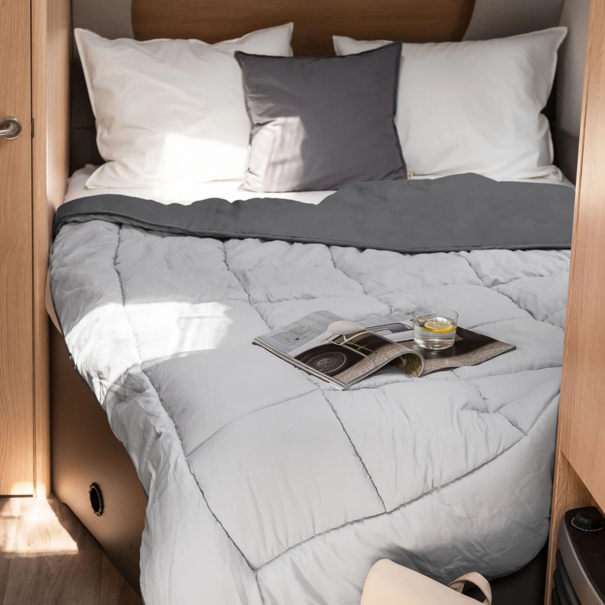 Geef je slaapkamer een moderne twist met dit stijlvolle tweekleurige dekbed. De