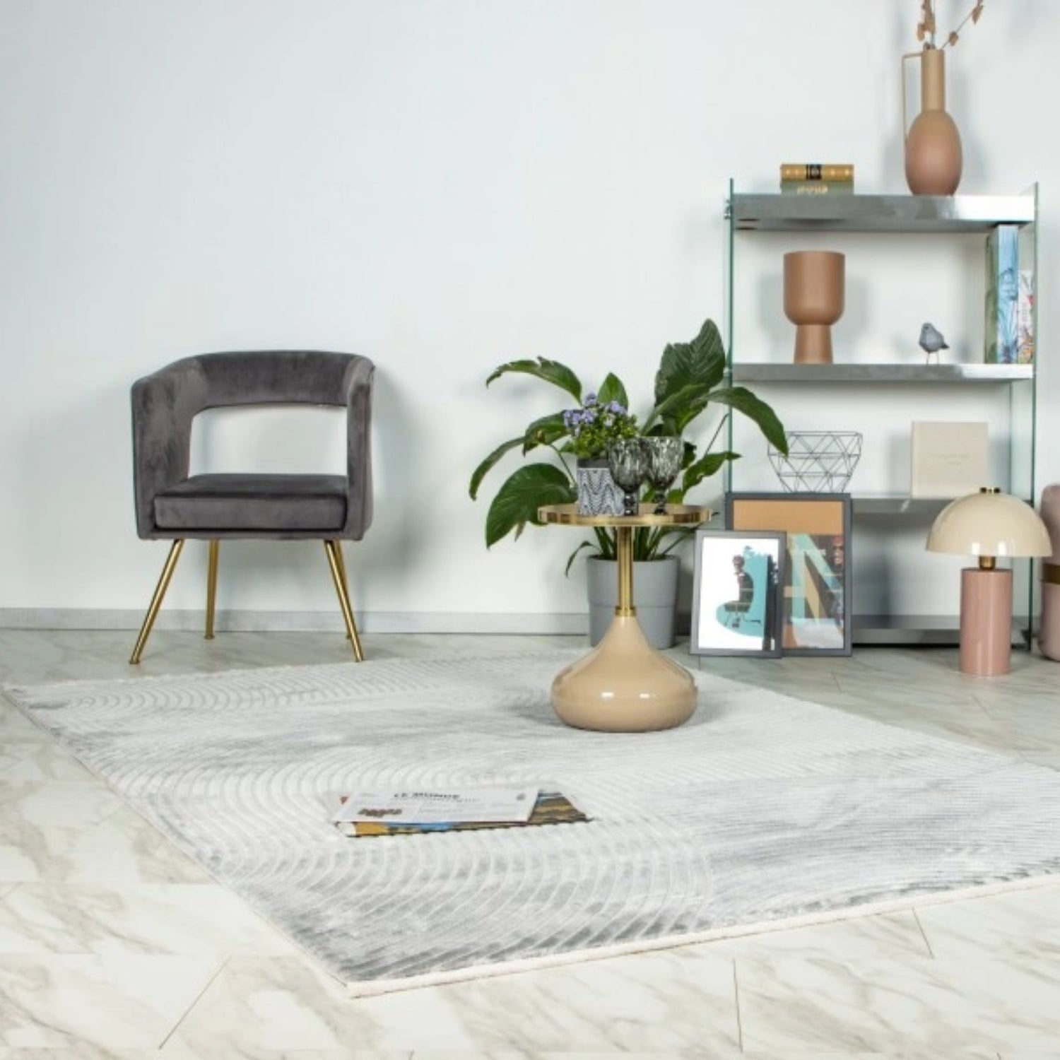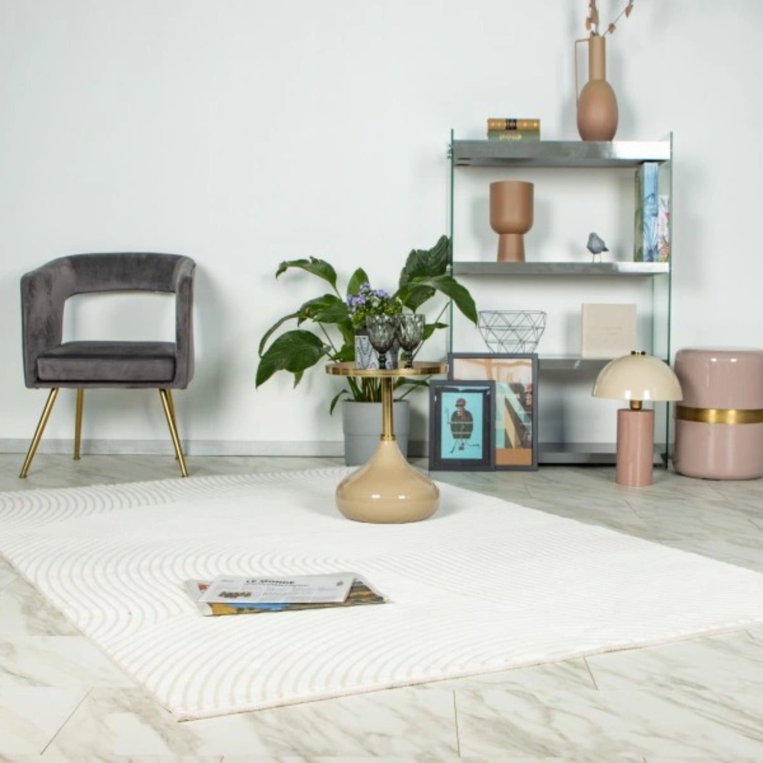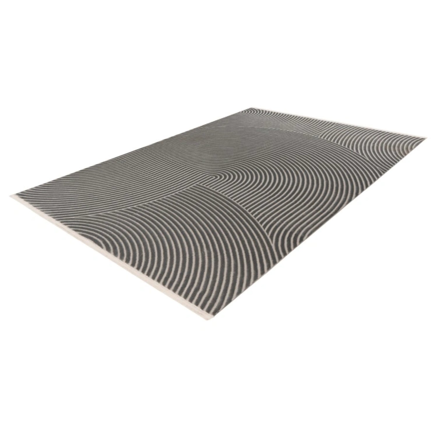 Dit vloerkleed brengt een speelse dynamiek naar je interieur met een betoverend