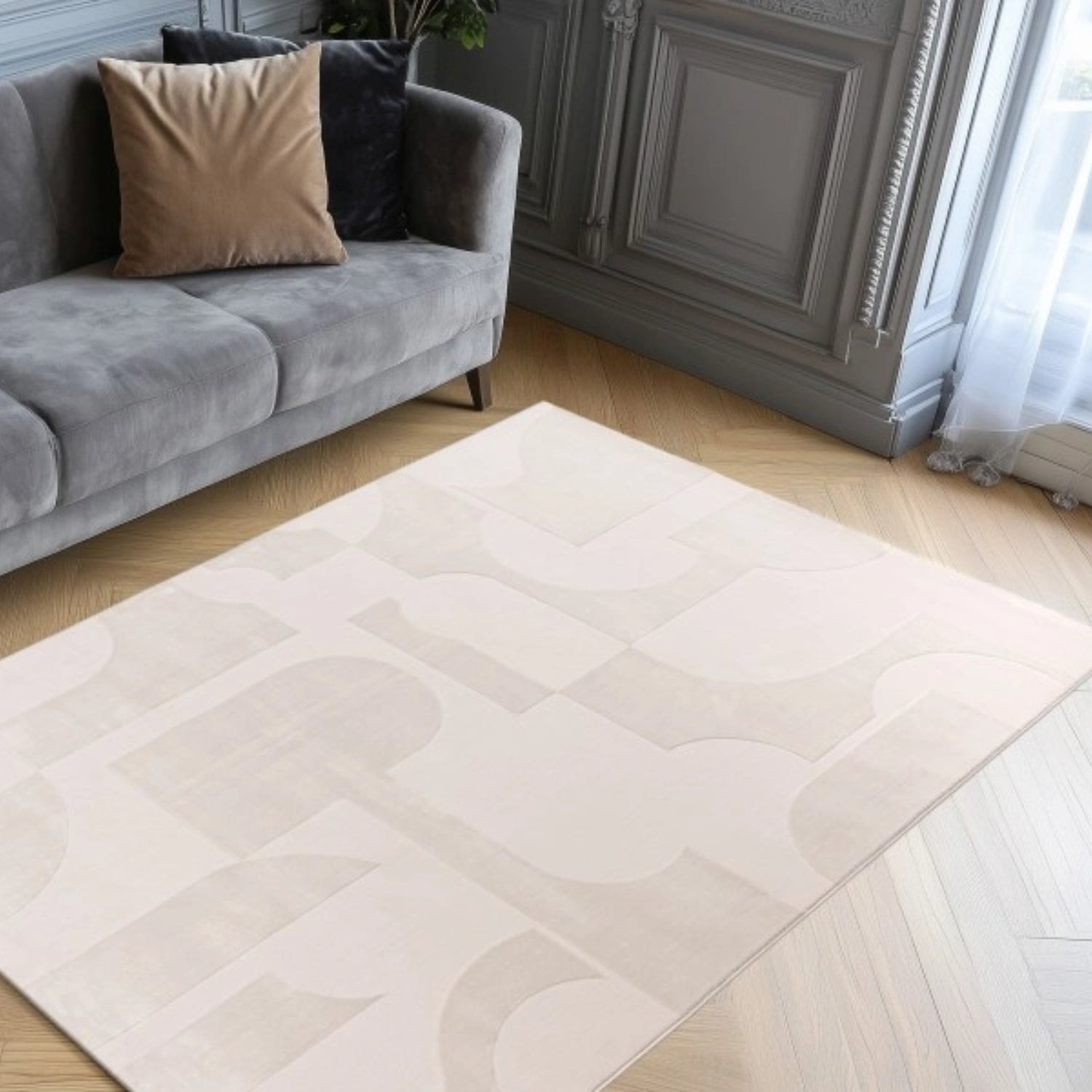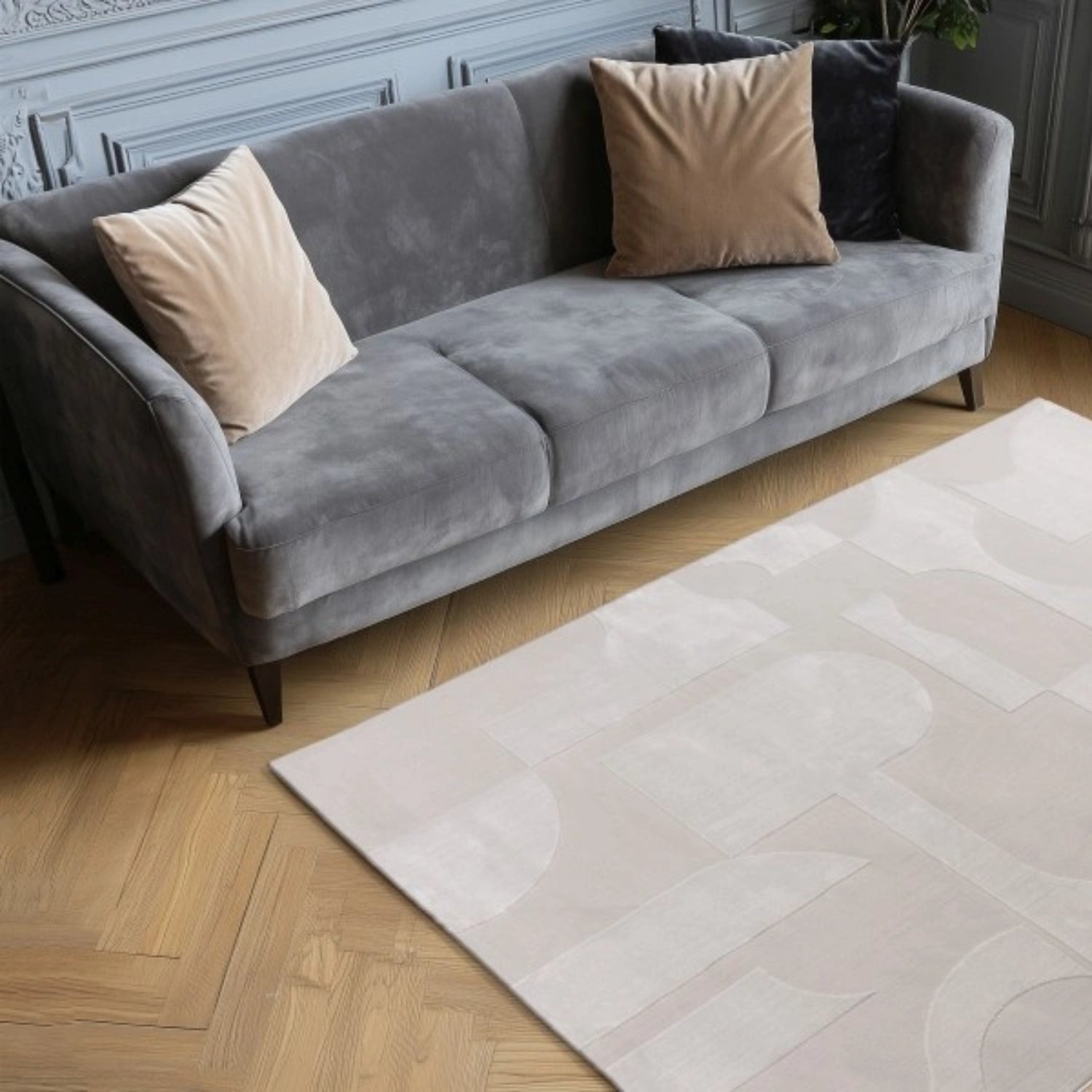 licht en schaduw dat het vloerkleed dynamiek en diepte geeft, zonder de rust van