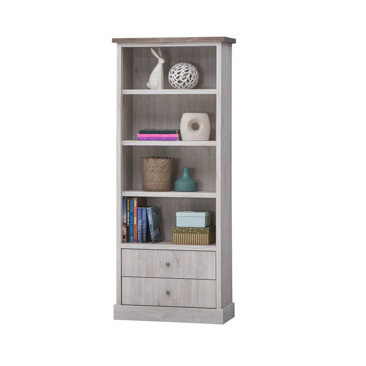 Deze elegante boekenkast in Autumn Oak en White Oak brengt verfijning in je