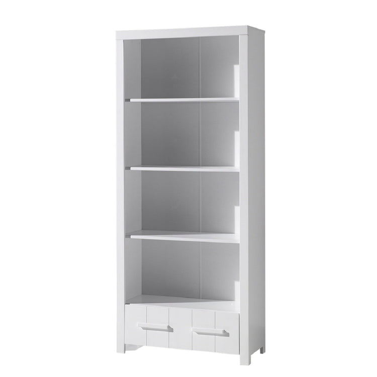 Deze boekenkast straalt met zijn verfijnde en minimalistische uitstraling een tijdloze elegantie uit. De subtiele vormgeving met open planken nodigt uit om persoonlijke schatten, zoals geliefde boeken, foto's en decoratieve objecten, op een stijlvolle manier uit te stallen. Aan de onderzijde geven de twee kleine lades met stevige handgrepen een extra vleugje karakter en zorgen tegelijkertijd voor discrete opbergruimte.