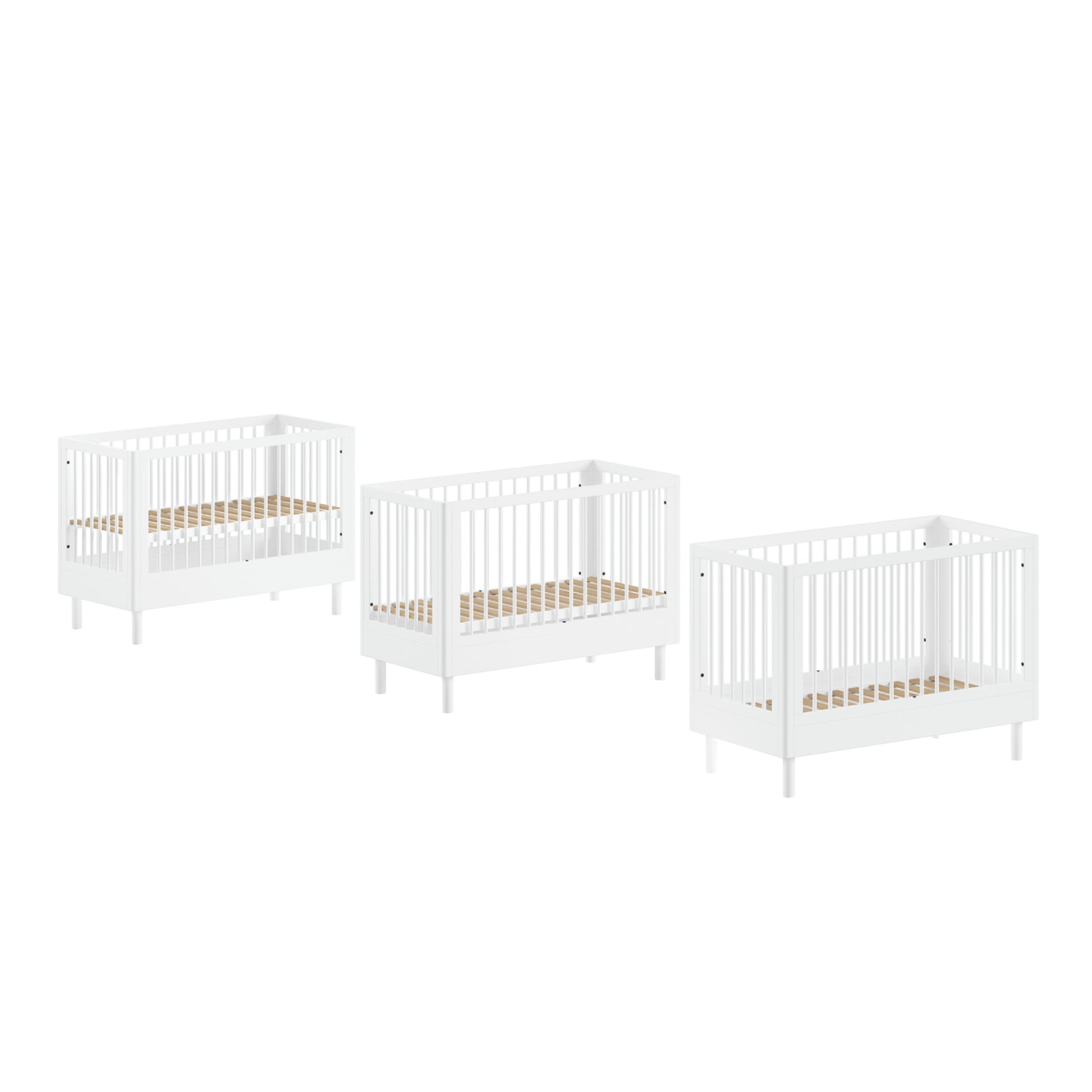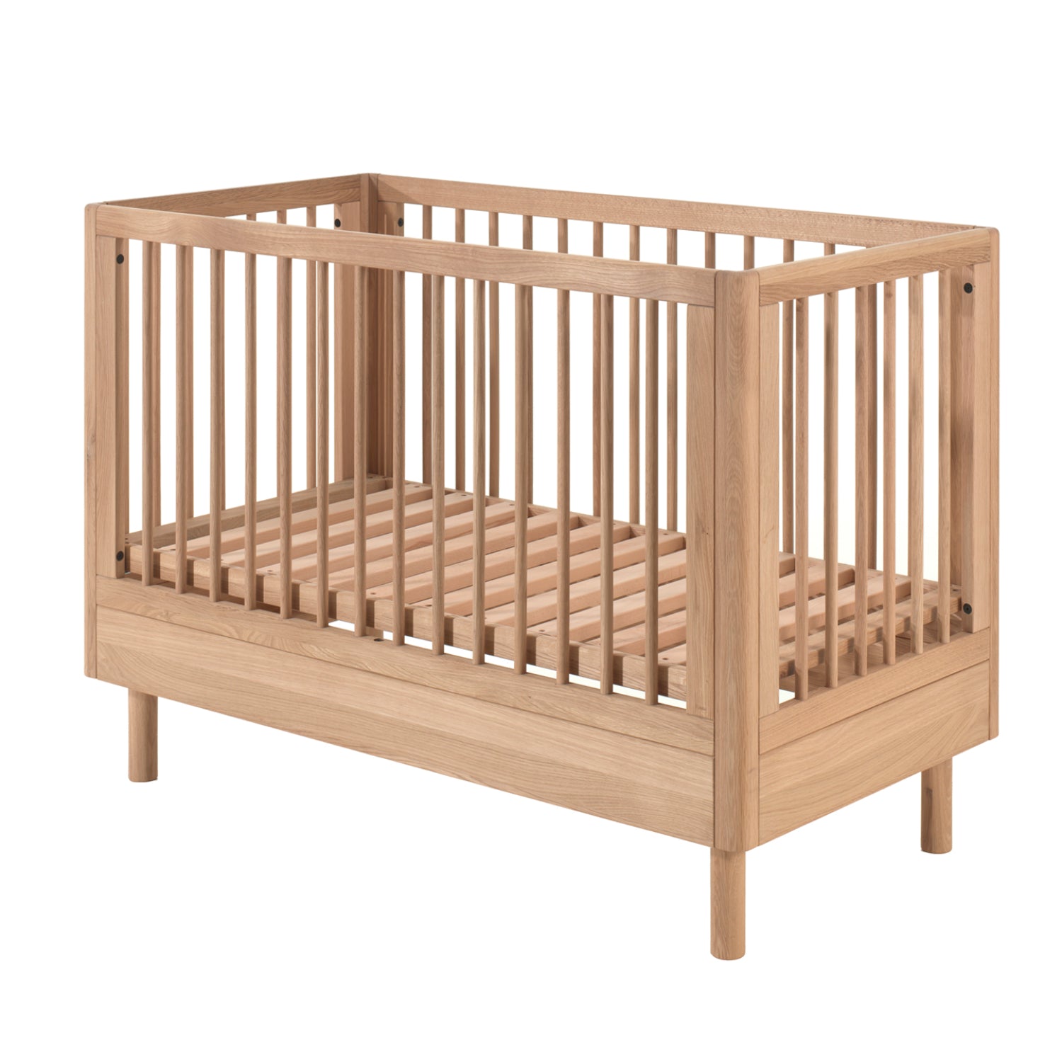 Dit babybed is ontworpen om jarenlang mee te gaan – van eerste slaapjes tot peuterdromen. Dankzij het verstelbare matrasbodem en de ombouwmogelijkheid verandert het moeiteloos mee met elke groeifase. De spijlen geven een luchtig en veilig gevoel, terwijl het strakke design in elke baby- of kinderkamer past. Stevig, stijlvol en doordacht – een bedje waar je op kunt bouwen.