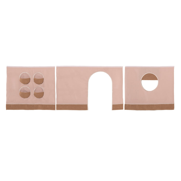 Deze textielset maakt van een halfhoogslaper een eigen huisje, fort of theater – net waar de fantasie naartoe gaat. Met een speelse deur en ronde ramen ontstaat er een gezellige wereld onder het bed, perfect voor verstoppertje, knuffels of rustige leesmomenten. De natuurlijke tinten zorgen voor een zachte uitstraling, terwijl het ontwerp uitnodigt tot eindeloos spel. Eenvoudig te bevestigen, maar groots in beleving.