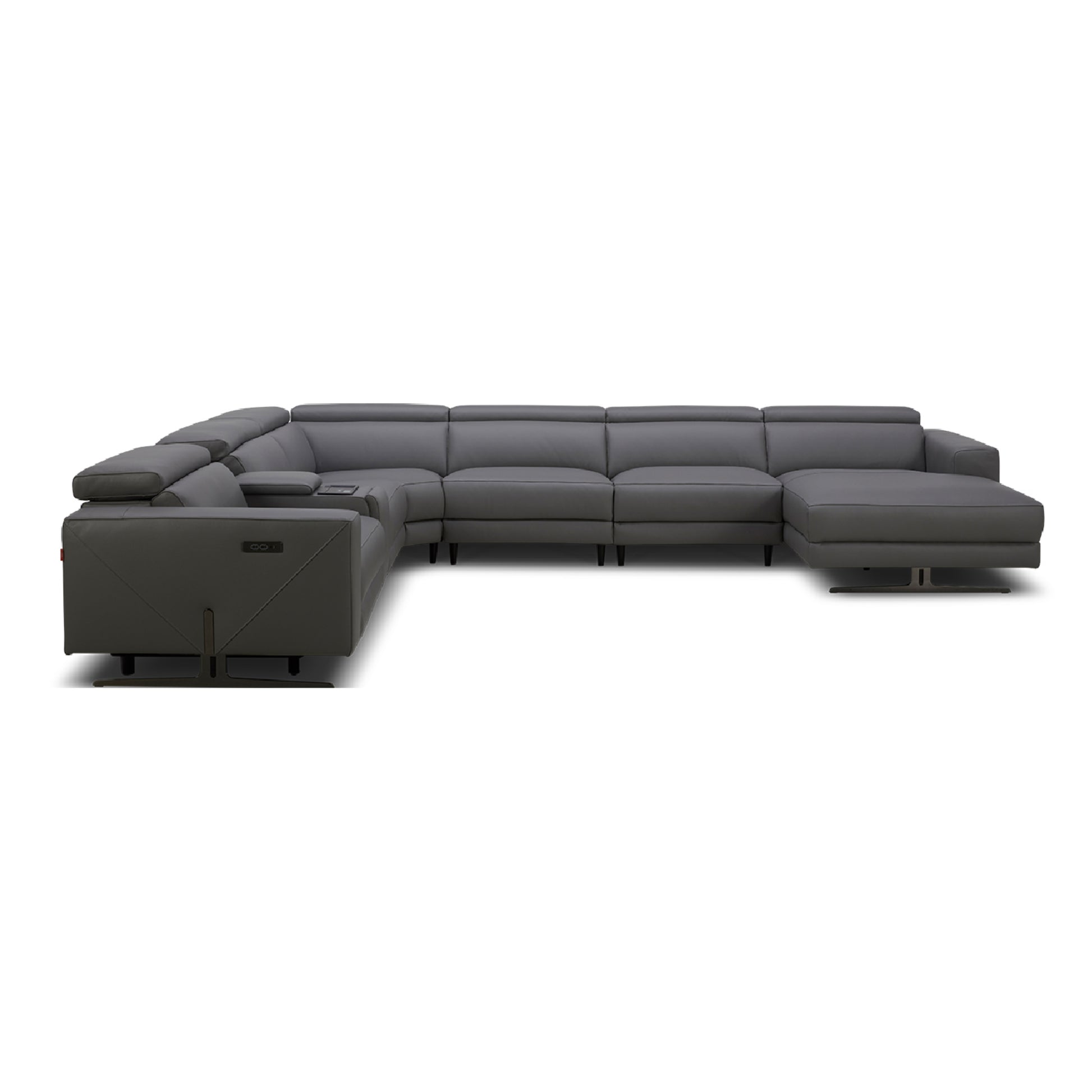 Deze royale U-vormige salon biedt maximaal comfort en functionaliteit. Uitgerust met een elektrische relaxzit, verstelbare hoofdsteunen en een geïntegreerde bekerhouder, vormt dit model de perfecte combinatie van design en gebruiksgemak. Verkrijgbaar in hoogwaardige stof of premium leder.