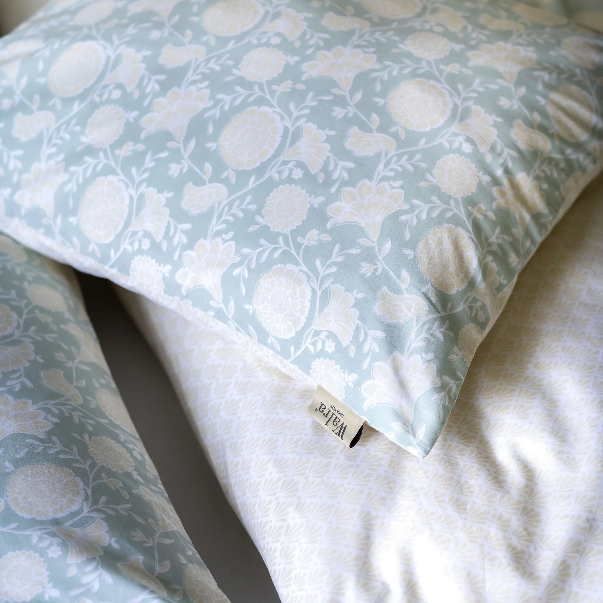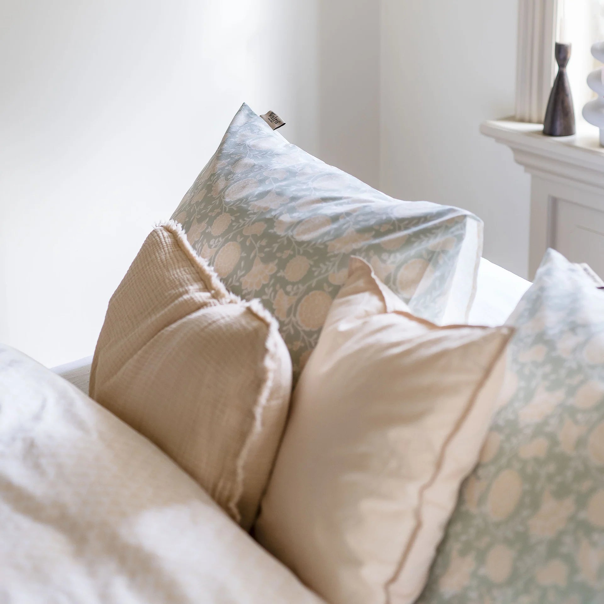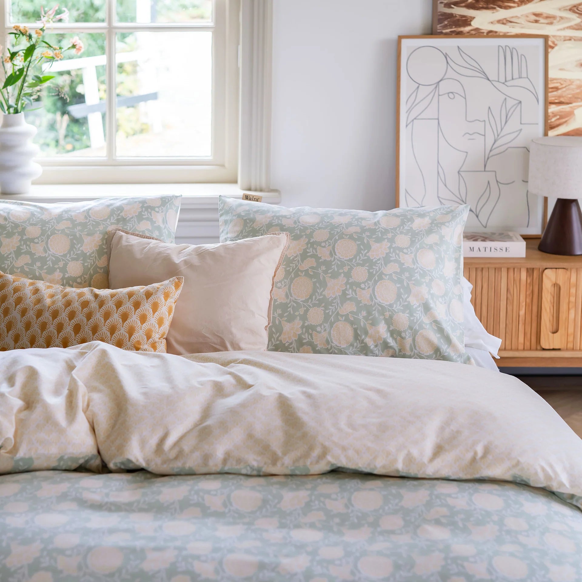 beddengoed speelt subtiel met zachte tinten van jadegroen en verfijnd beige,