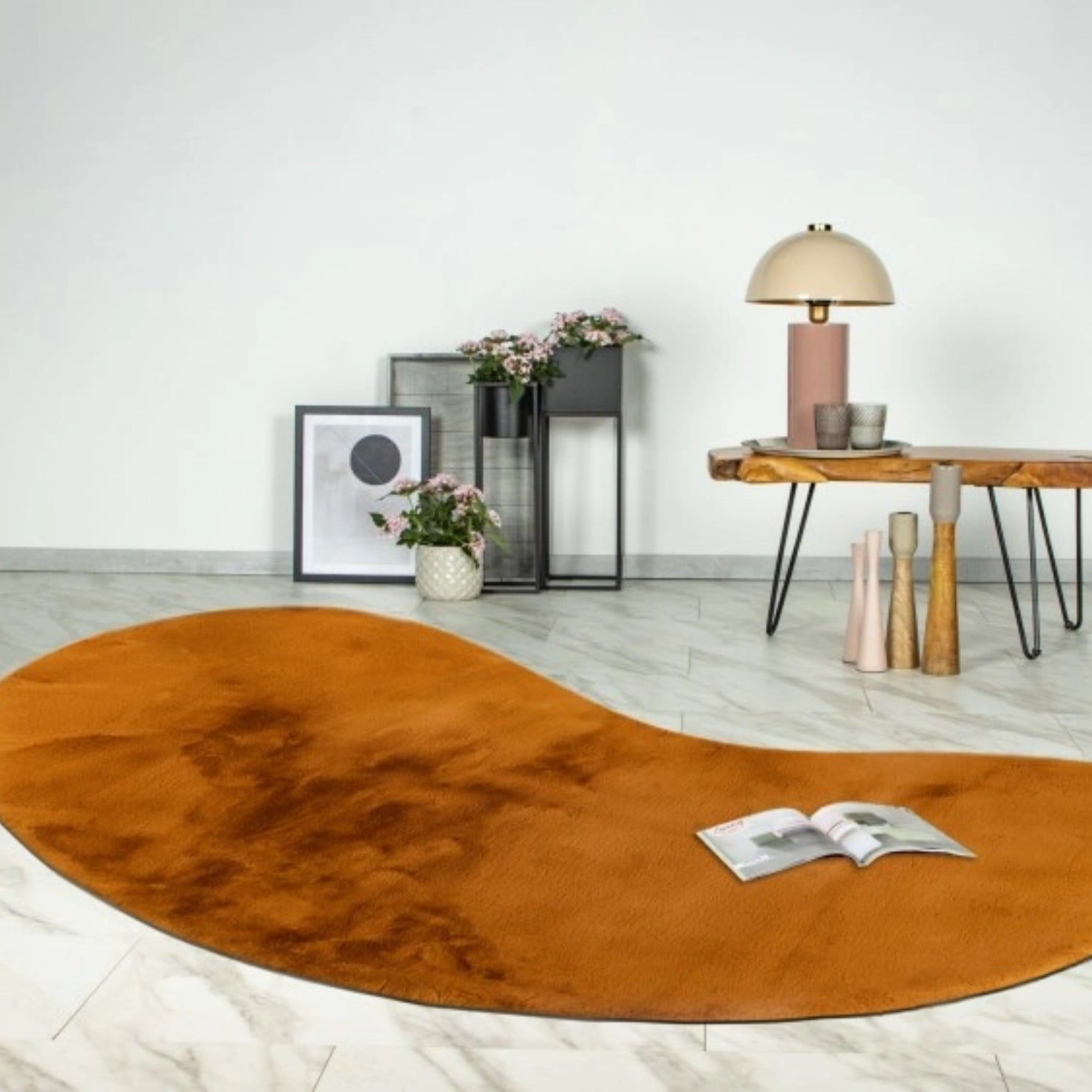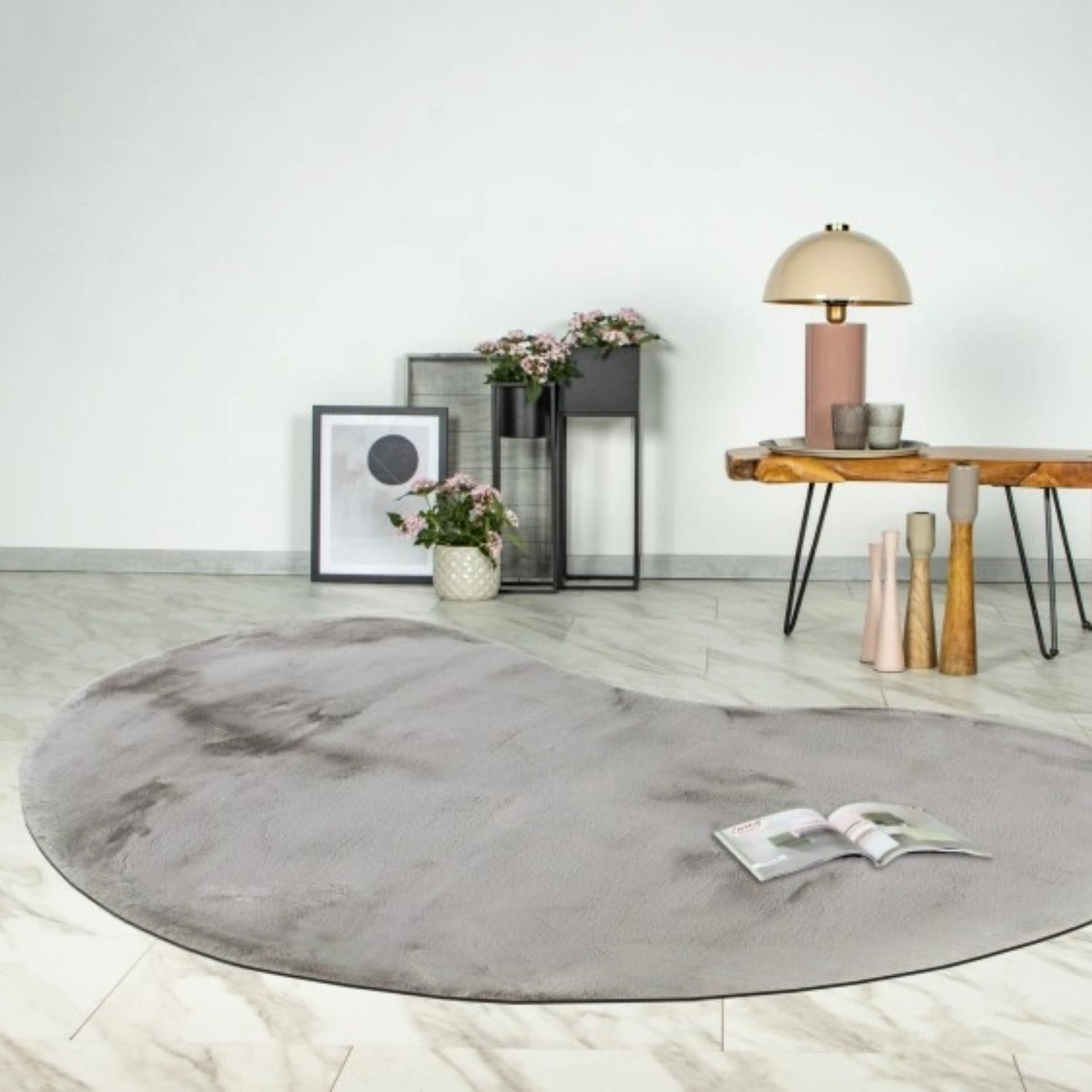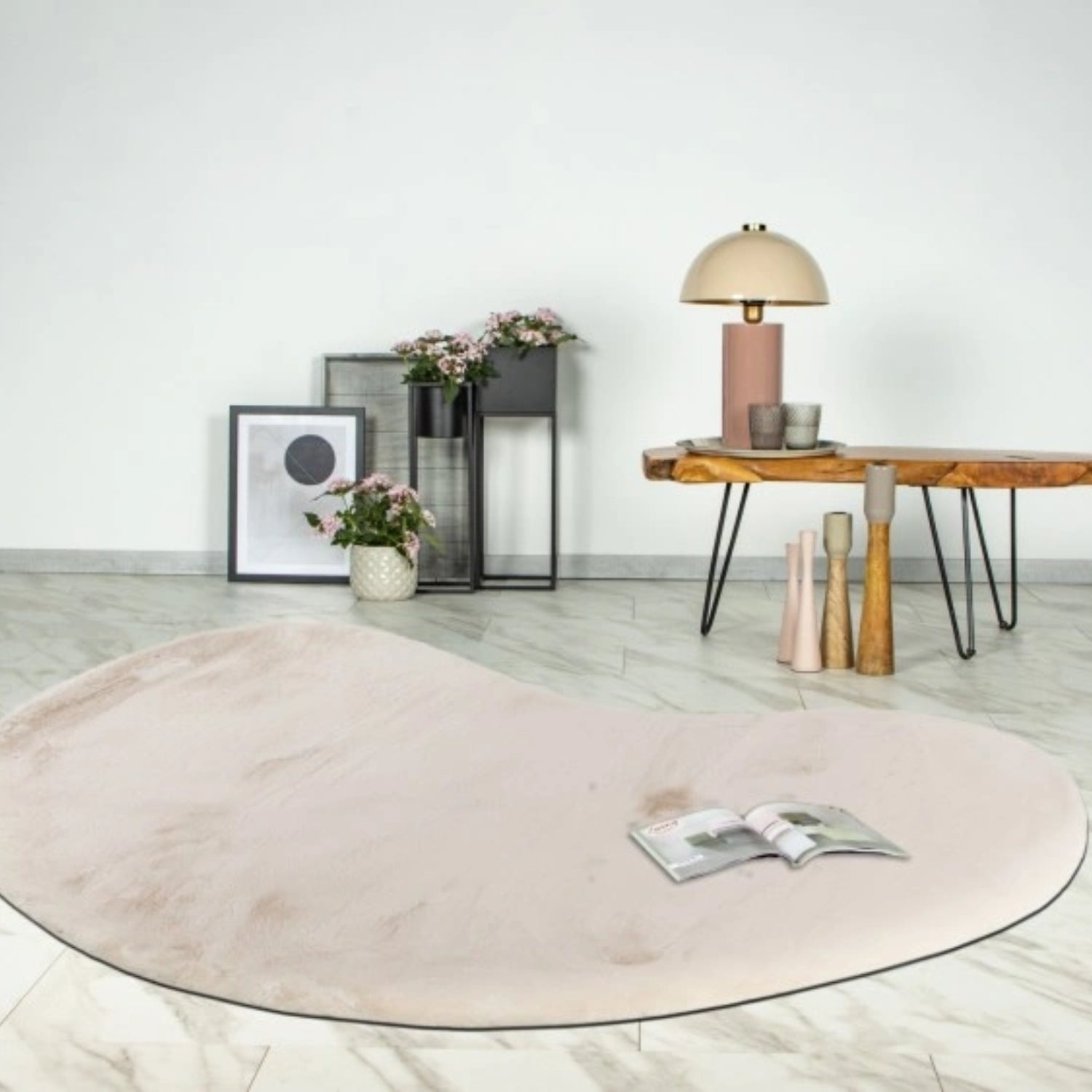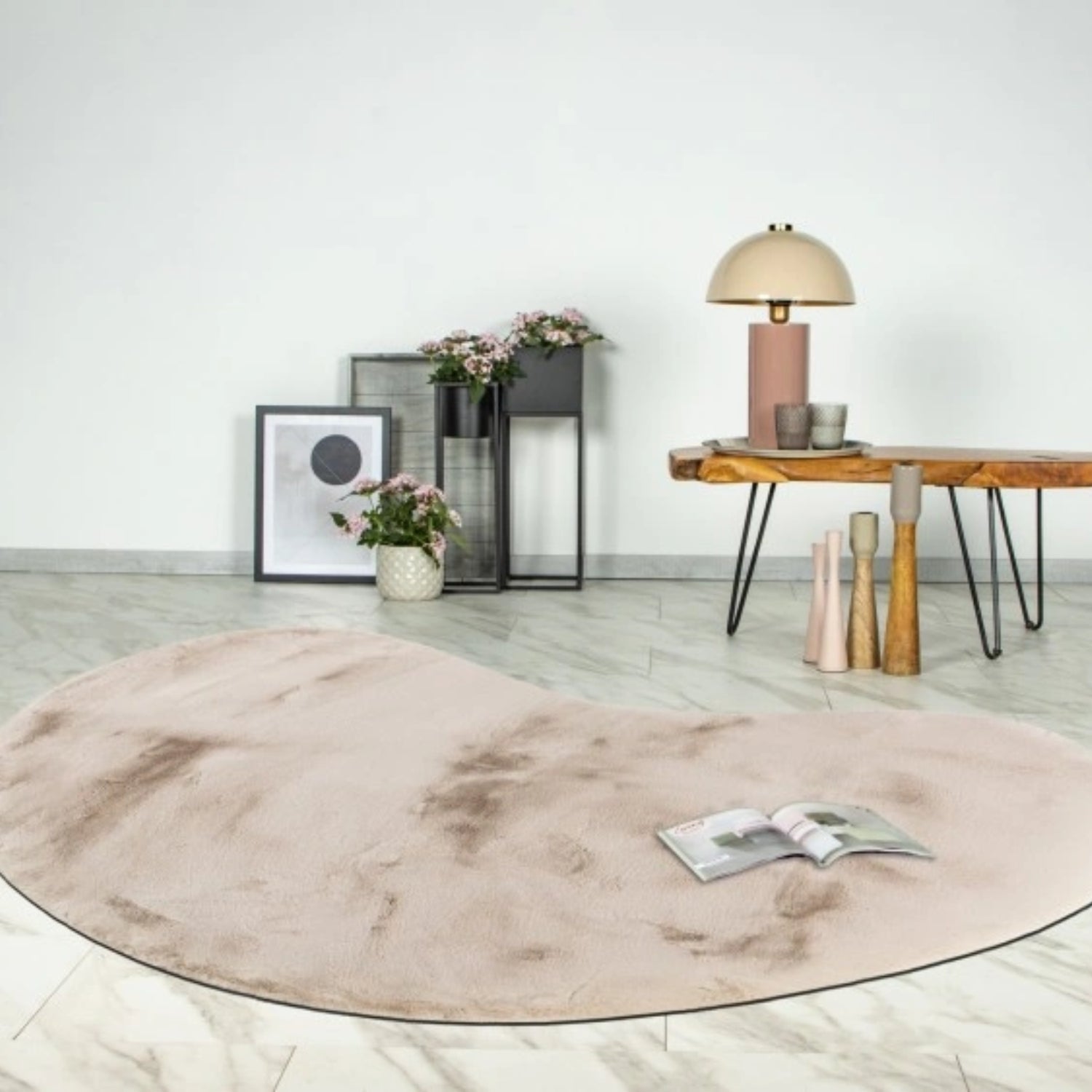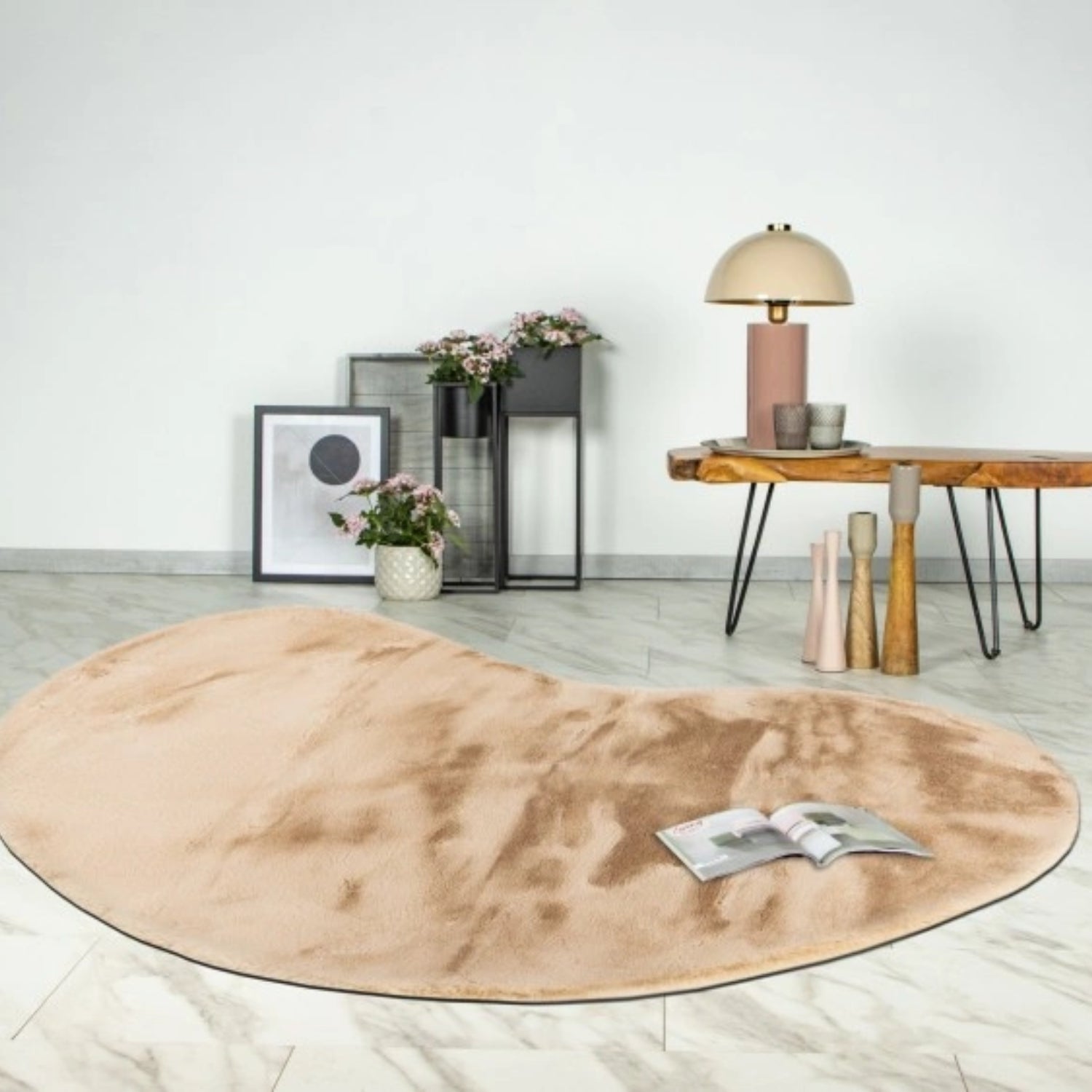 - Uniek vormgegeven vloerkleed met organische, asymmetrische vorm.
