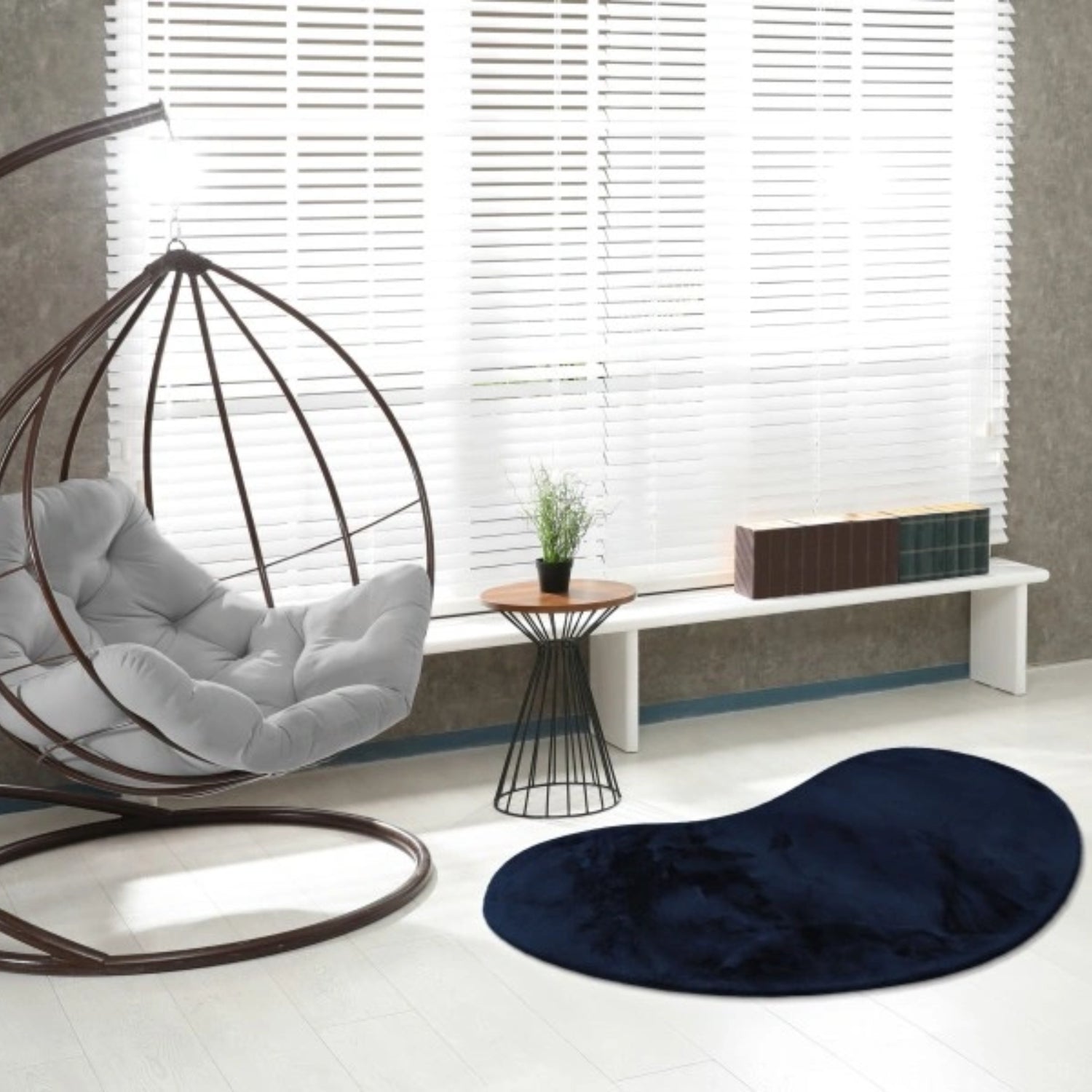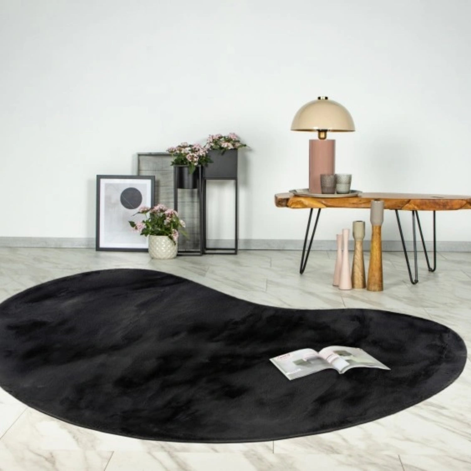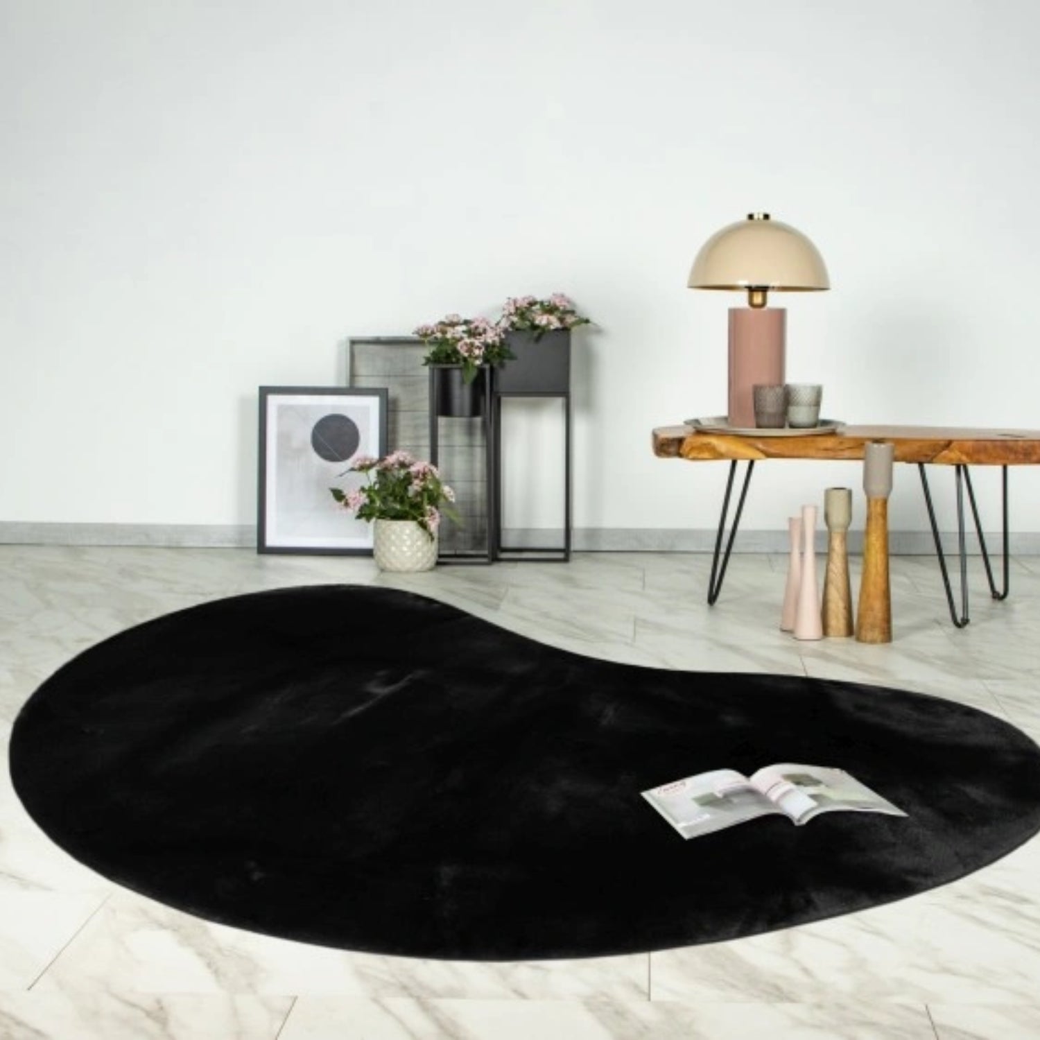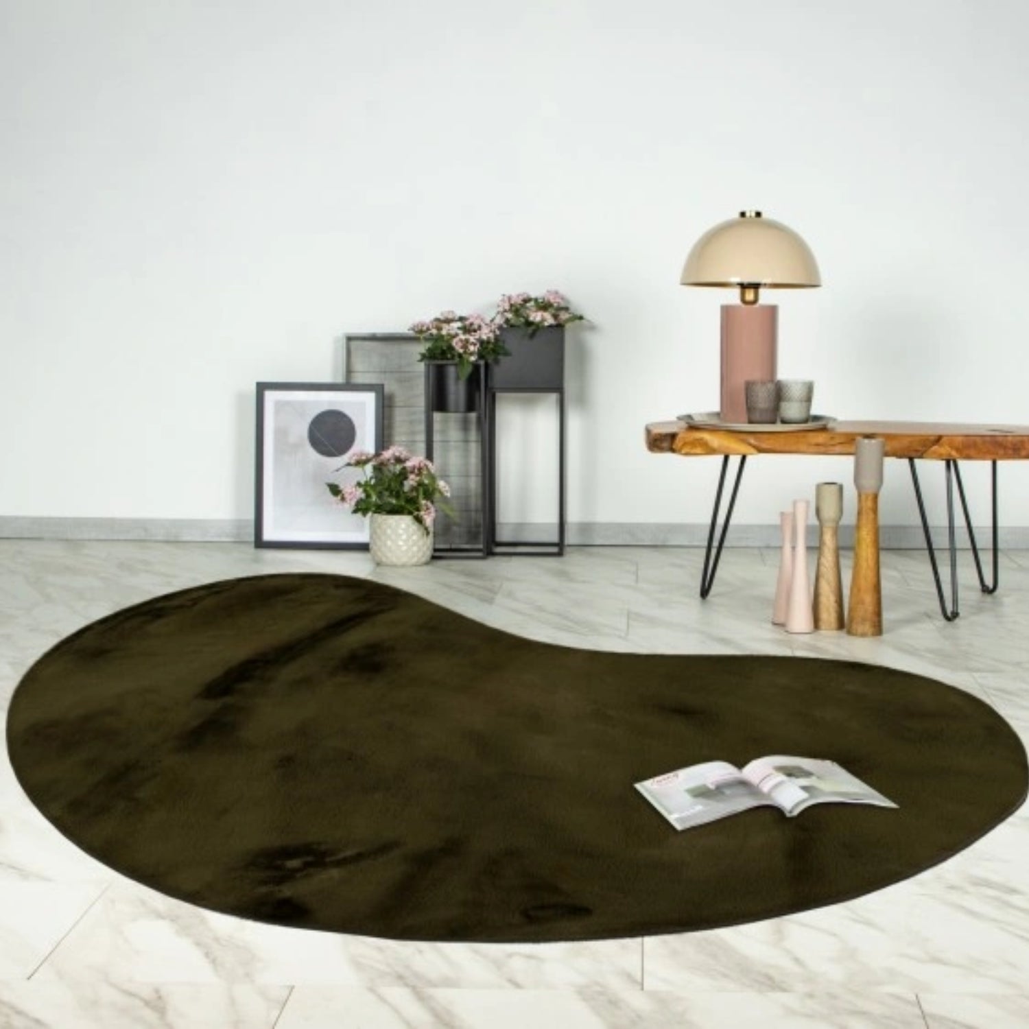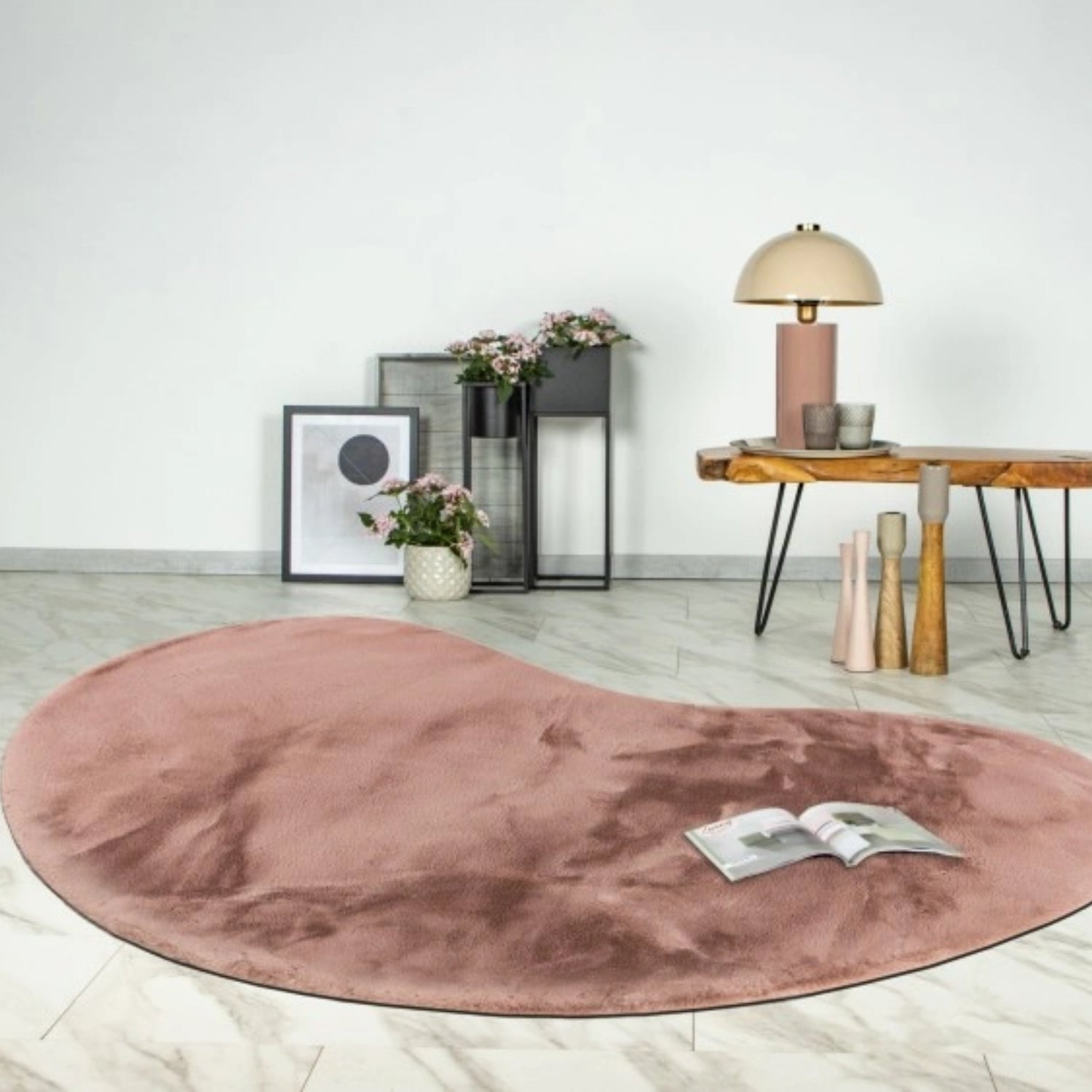 - Uniek vormgegeven vloerkleed met organische, asymmetrische vorm.