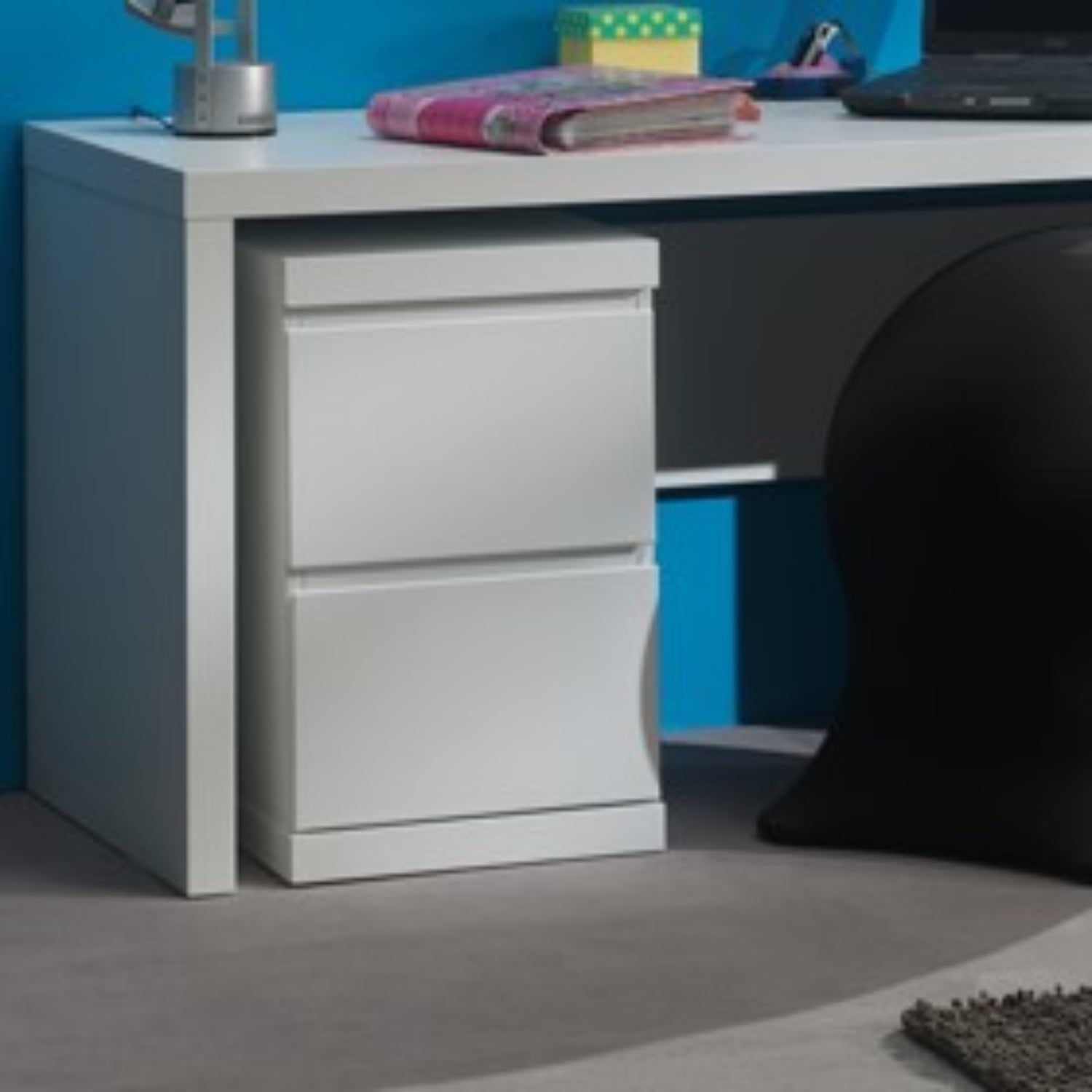 Deze ladeblok is de ideale aanvulling op elke werkplek of slaapkamer. De twee diepe lades bieden verrassend veel opbergruimte voor papierwerk, schoolspullen of persoonlijke items. Dankzij het minimalistische design en de greeploze fronten oogt het modern en opgeruimd – precies zoals je het graag hebt. Schuif ‘m onder een bureau of zet ‘m los in de kamer: functioneel én stijlvol in één.