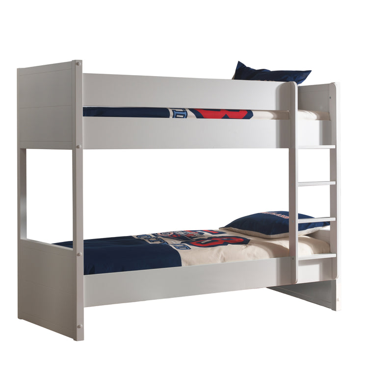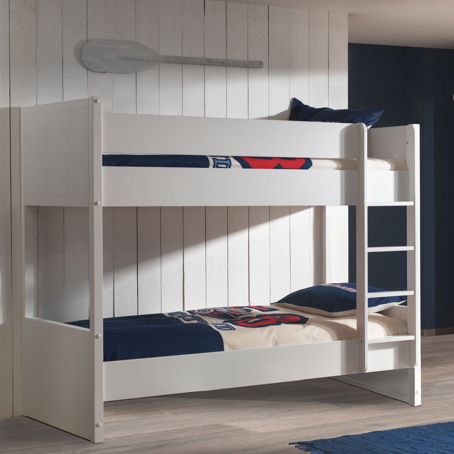 Deze strakke stapelbed is dé ruimtebesparende held voor broertjes, zusjes of logeergasten. Het moderne ontwerp past in elke kinderkamer en biedt dankzij de vaste ladder veilige toegang tot het bovenbed. De gesloten zijpanelen zorgen voor geborgenheid, terwijl het open frame licht en luchtig oogt. Een bed dat functioneel is zonder saai te worden – ideaal voor kleine kamers met grote dromen.
