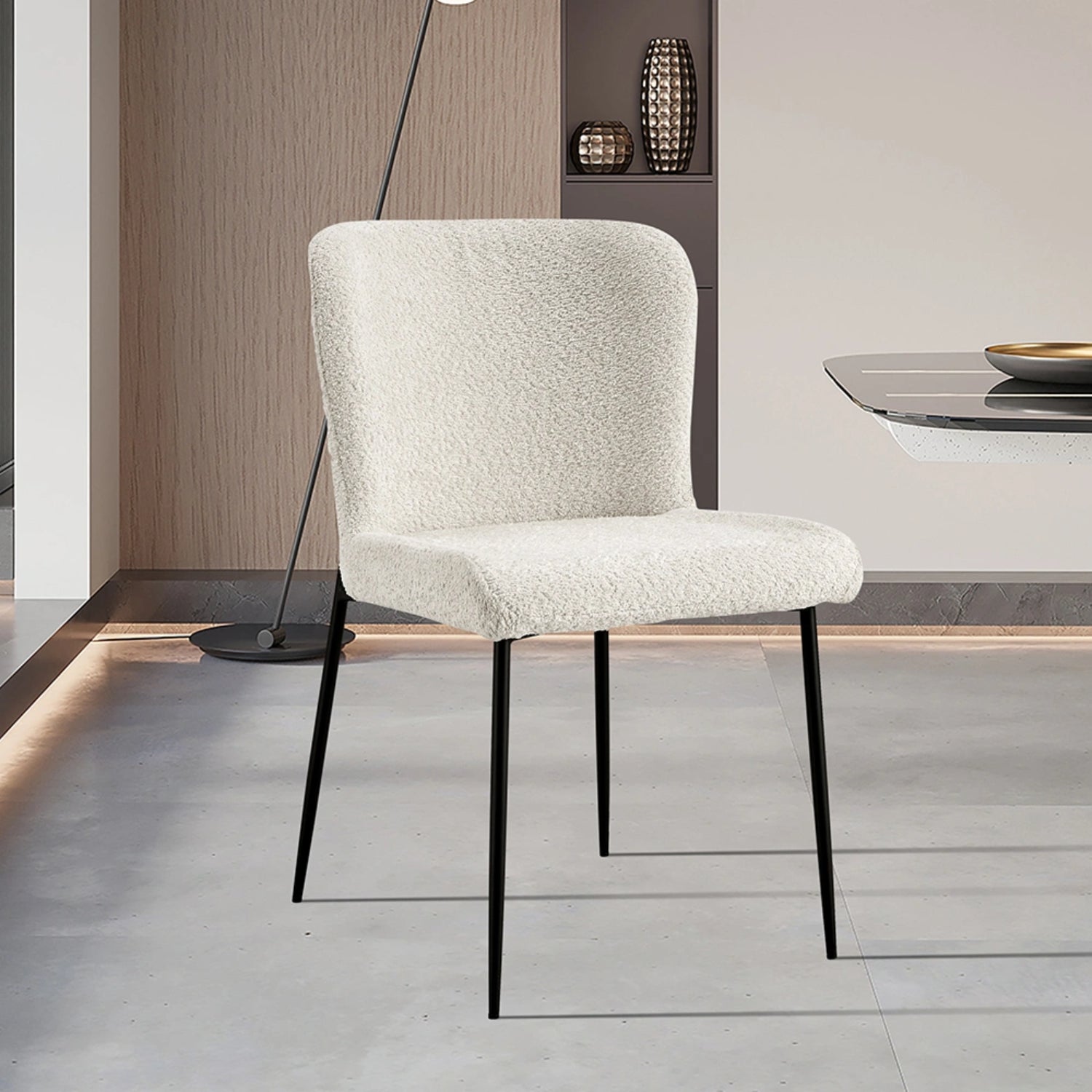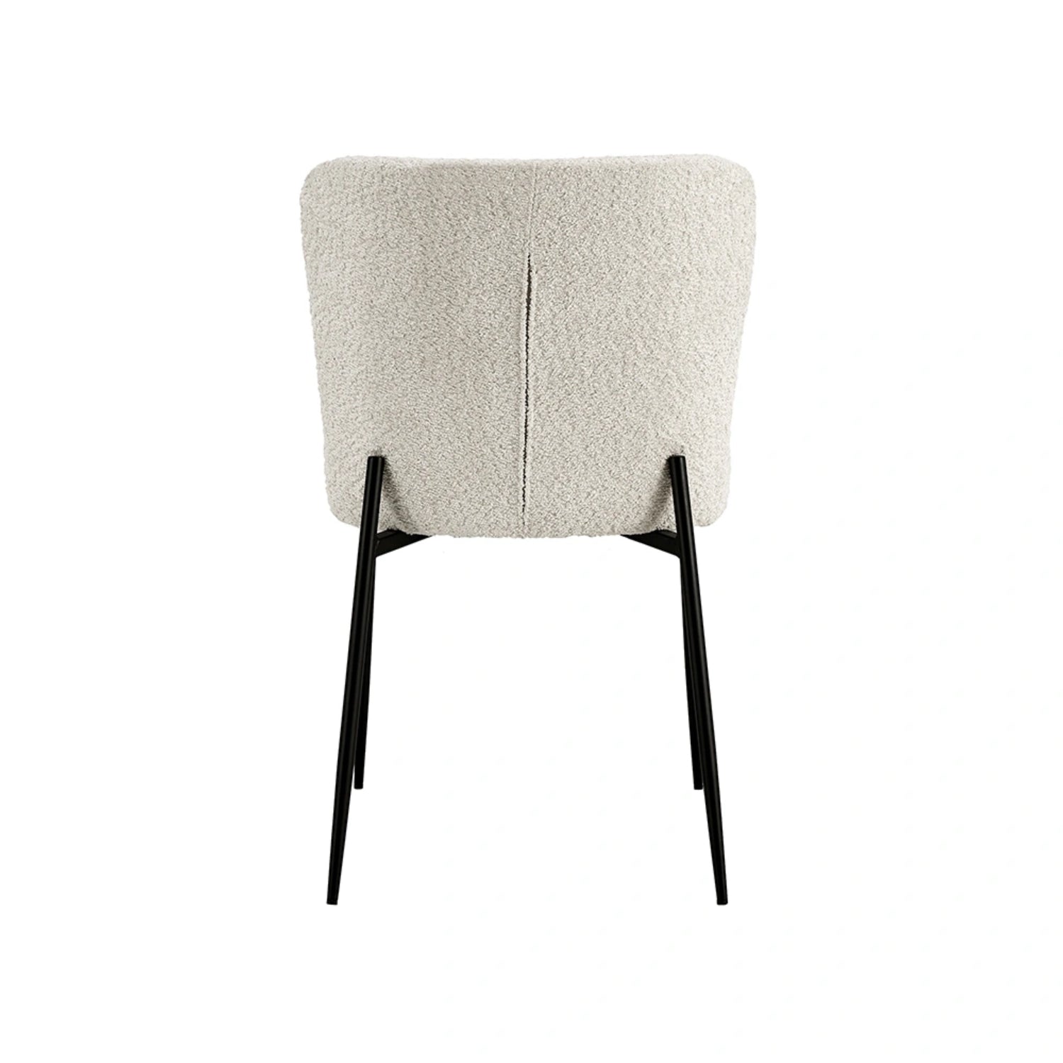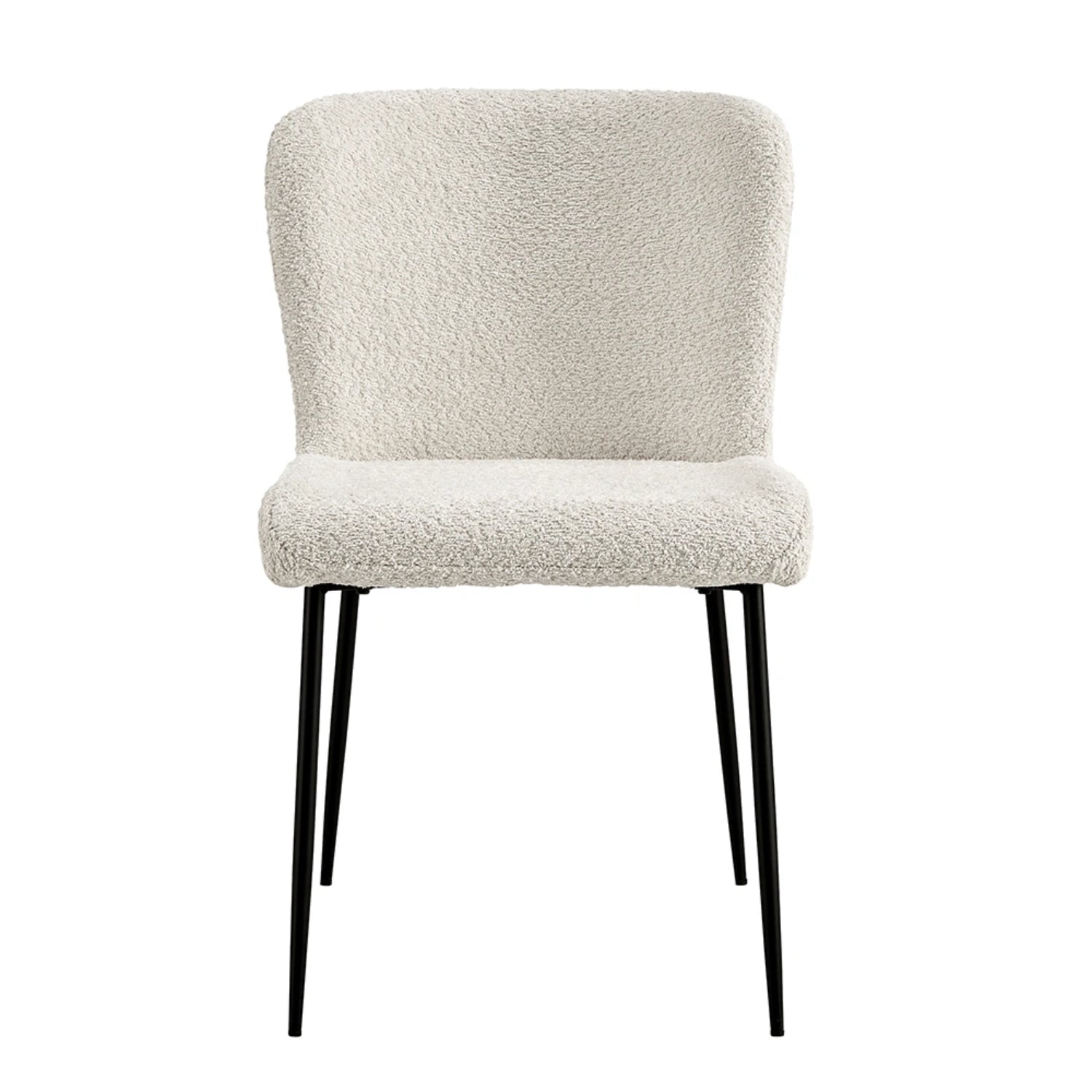 lange, gezellige avonden aan tafel. De royale zitting en gebogen rugleuning omarmen je subtiel, terwijl de warme stof zorgt voor een knus gevoel. De zwarte metalen
