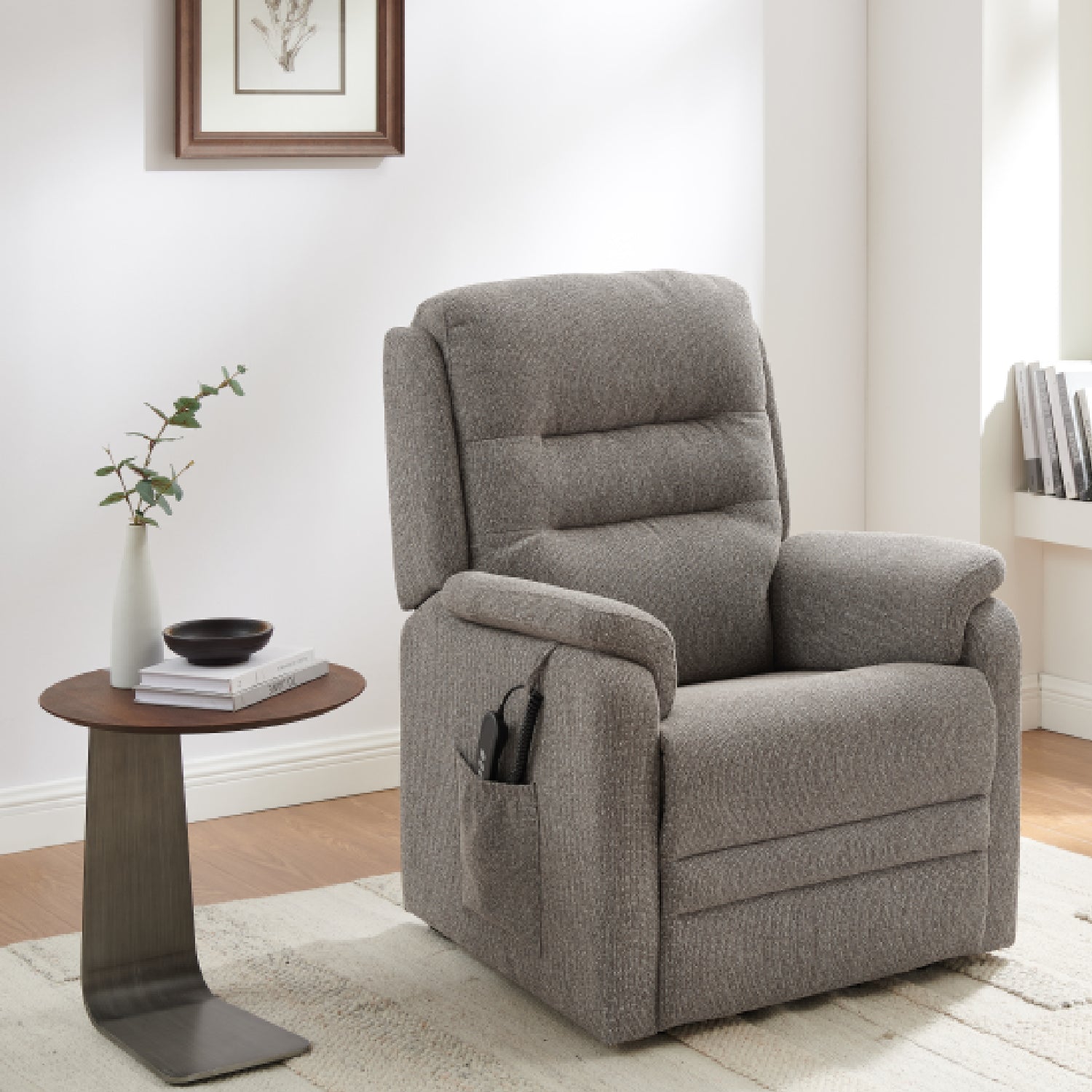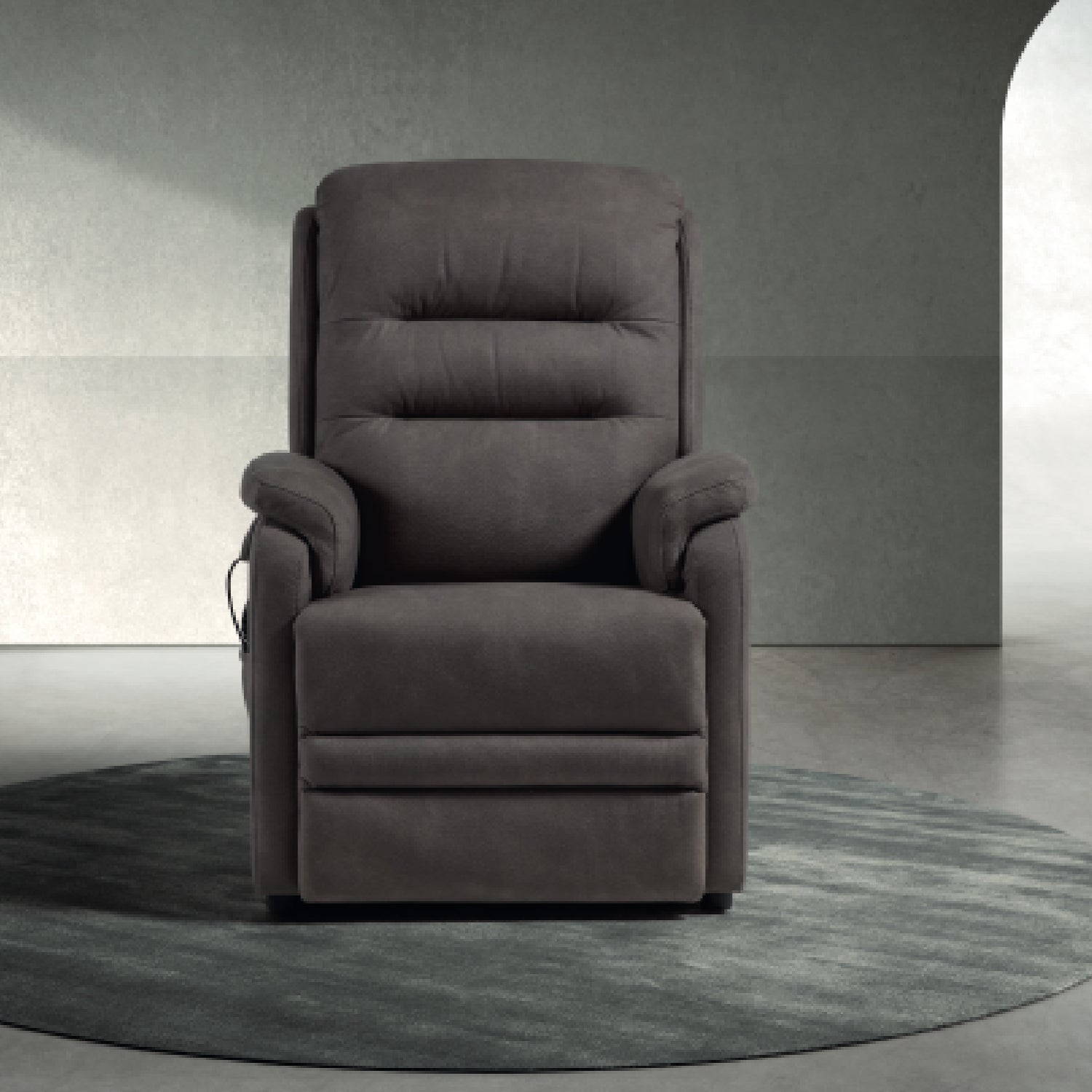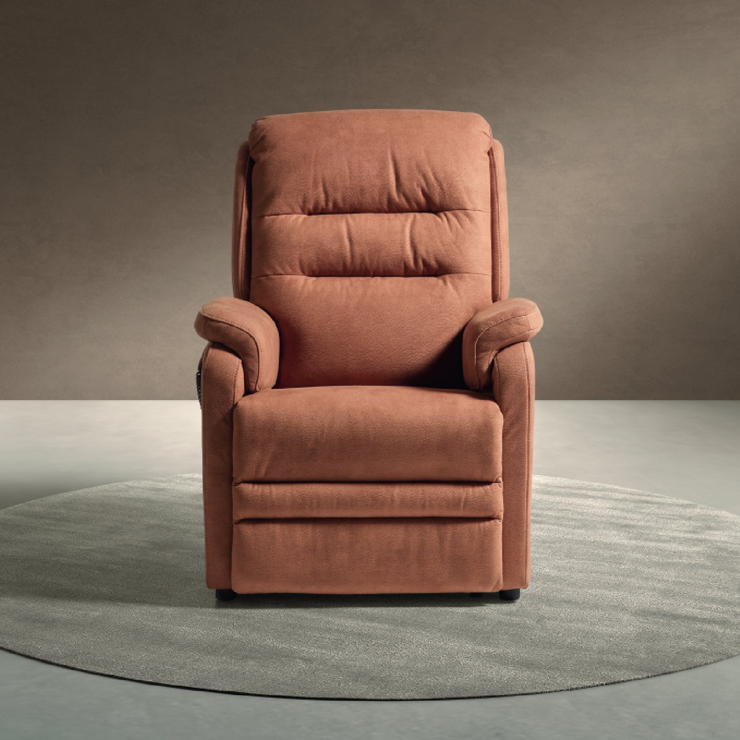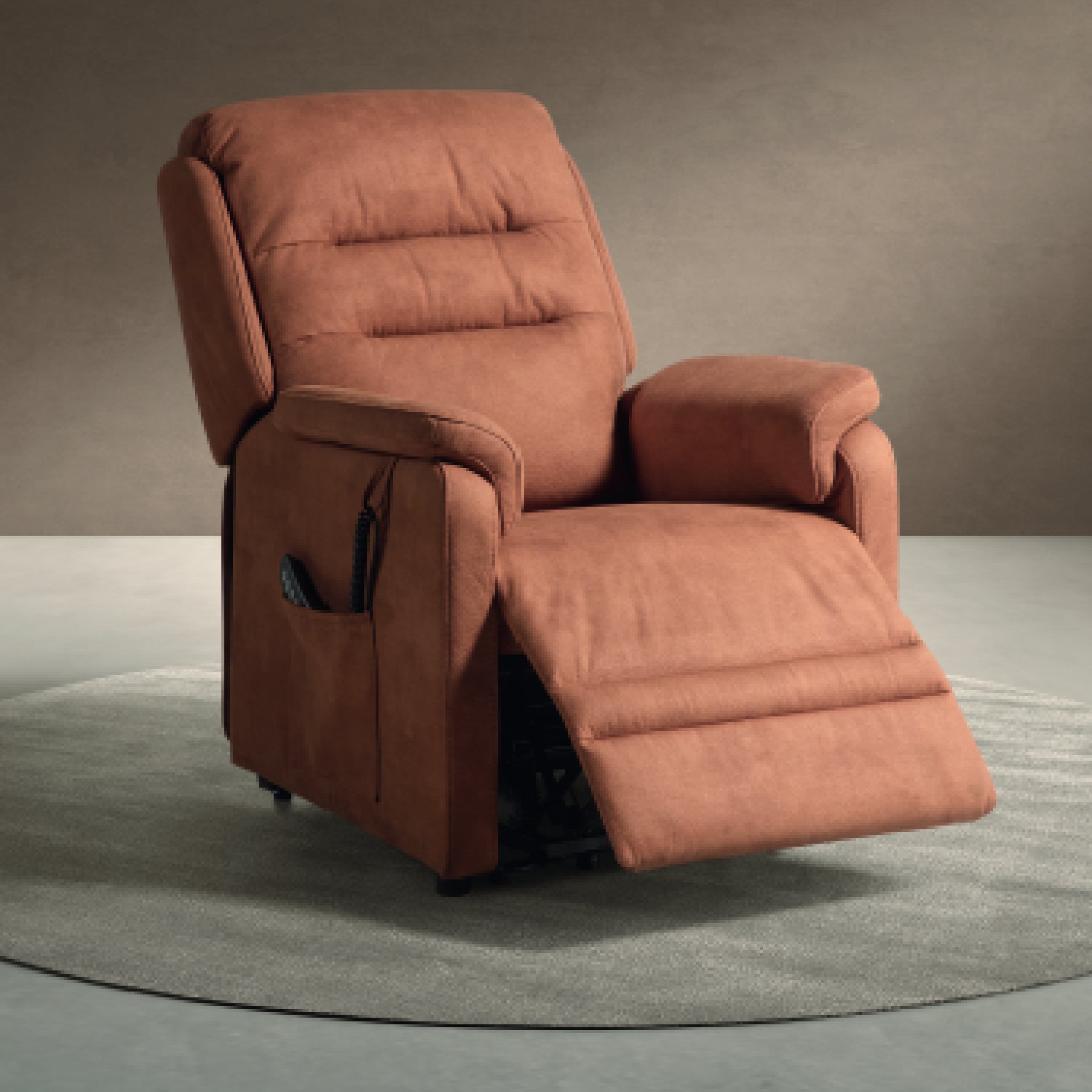 Deze comfortabele relaxzetel combineert een zachte stoffering met geavanceerde functionaliteit om elke zitervaring te optimaliseren. Dankzij de geïntegreerde liftfunctie sta je moeiteloos recht — ideaal voor wie extra ondersteuning wenst.