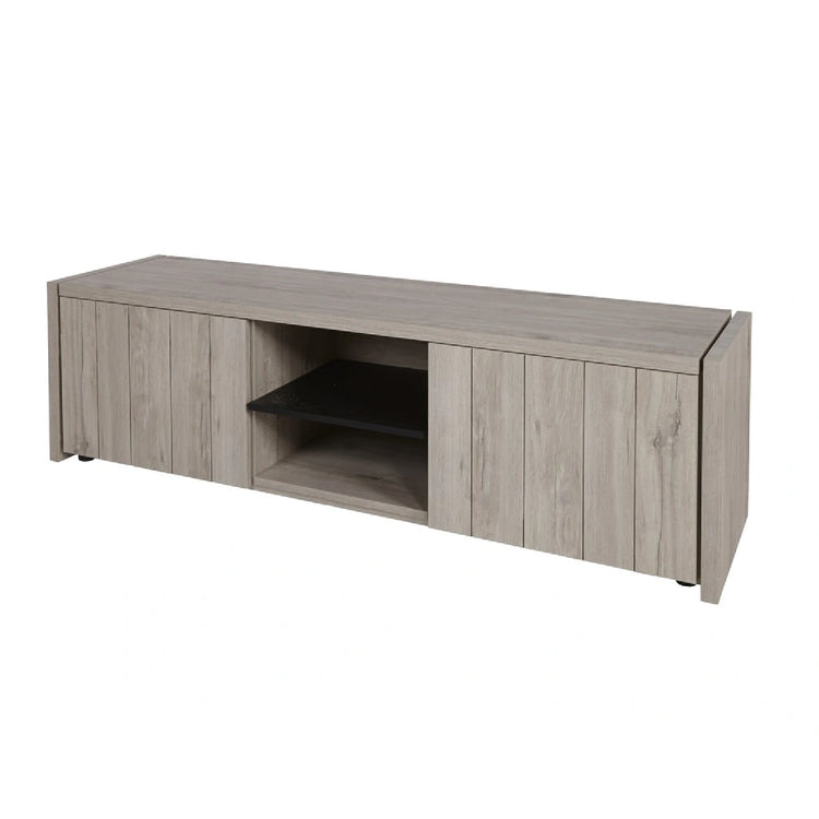 Dit meubel ademt functionaliteit zonder in te boeten op verfijning: de twee brede