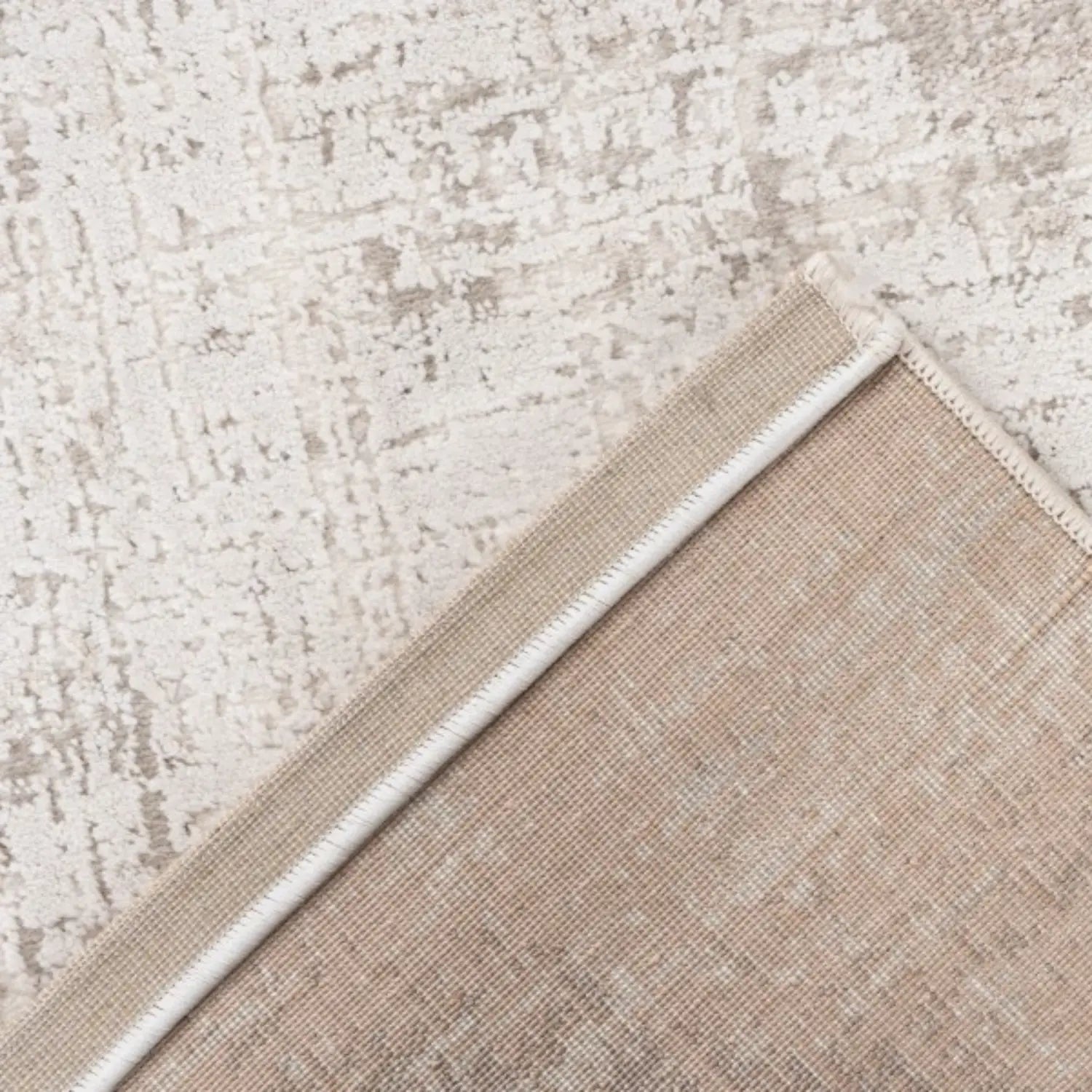 Met zijn subtiel gelaagde ontwerp roept dit vloerkleed een gevoel van diepte en