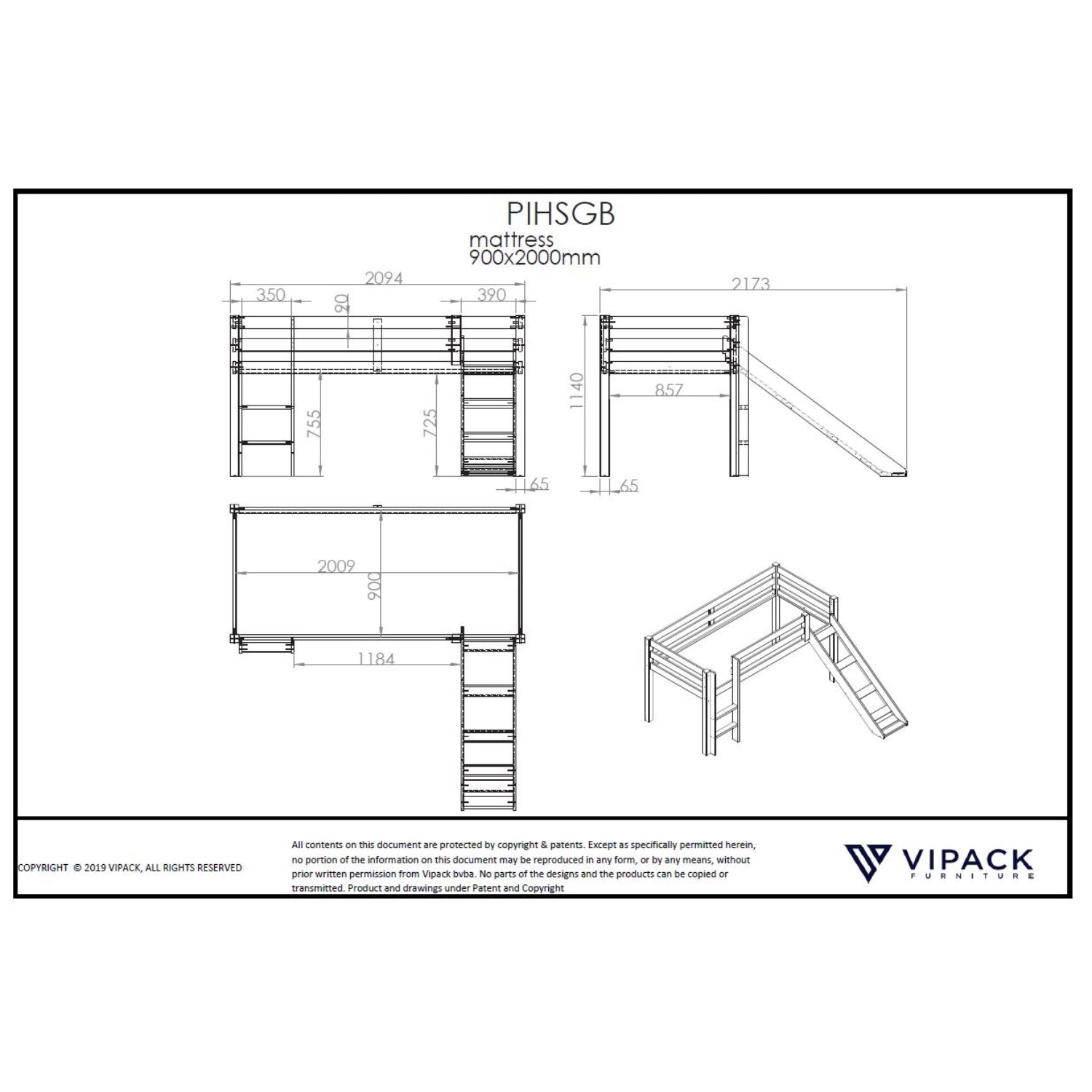 kinderkamer. De elegante afwerking benadrukt het frisse, moderne karakter van het meubel, terwijl de geïntegreerde glijbaan het geheel een speelse twist geeft. De slimme ladder met brede treden staat stevig en maakt opklimmen makkelijk, zelfs voor de kleinsten.