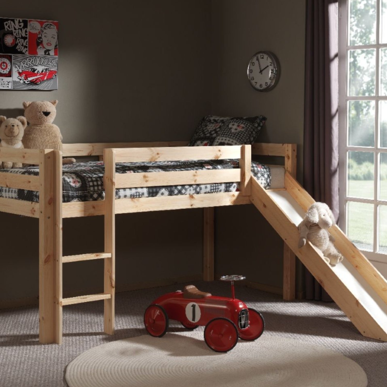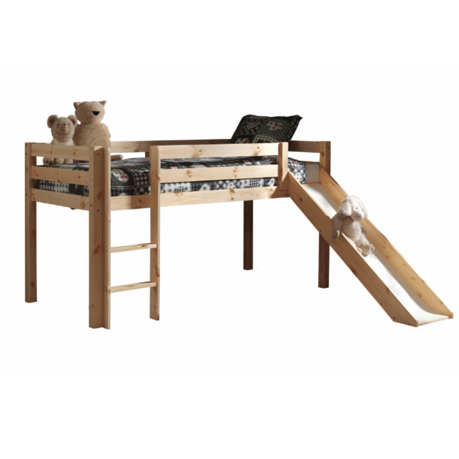 Deze speelse halfhoogslaper, vervaardigd uit solide Scandinavisch grenenhout,