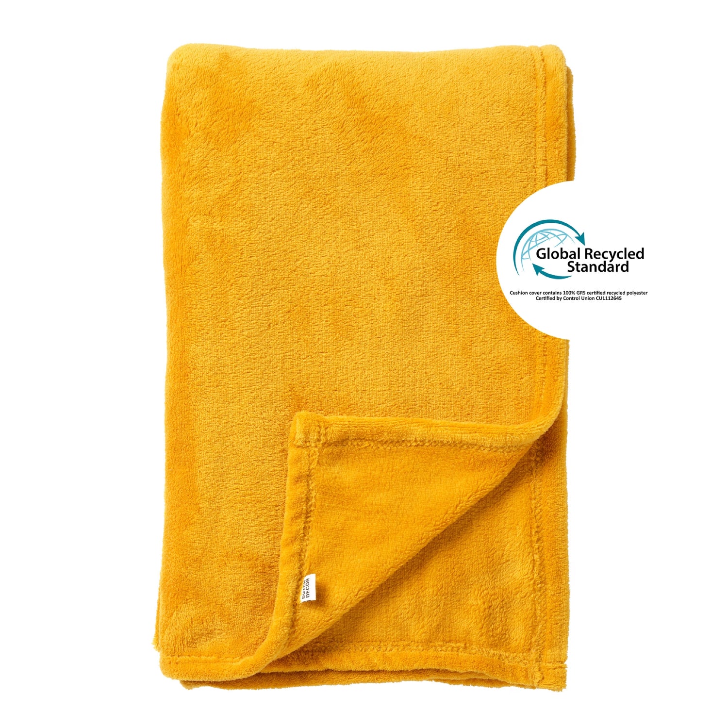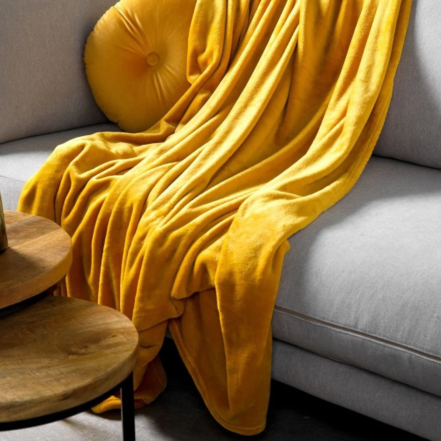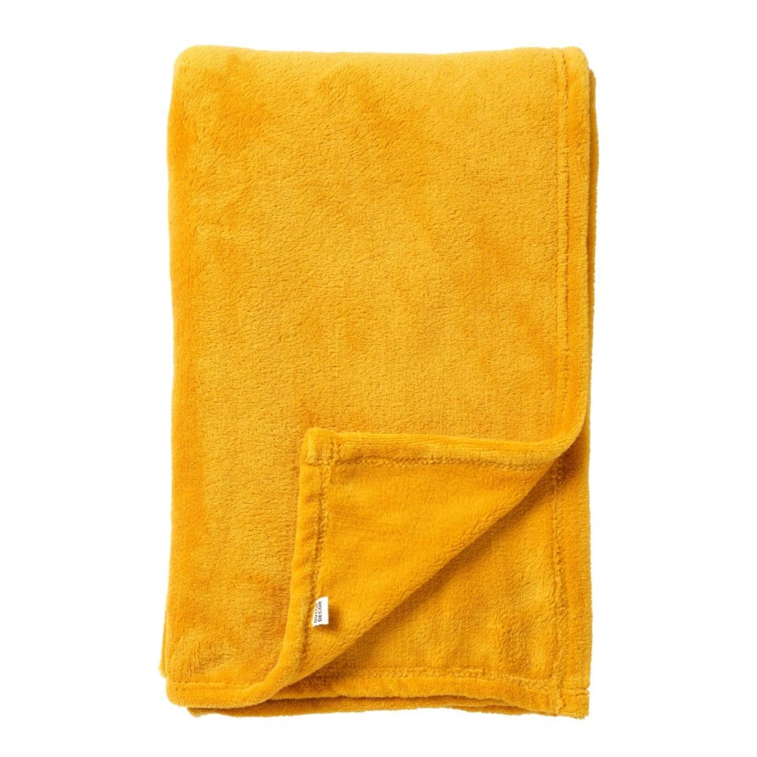 zachte fleece-structuur die uitnodigt tot lang blijven liggen. De diepe gouden kleur