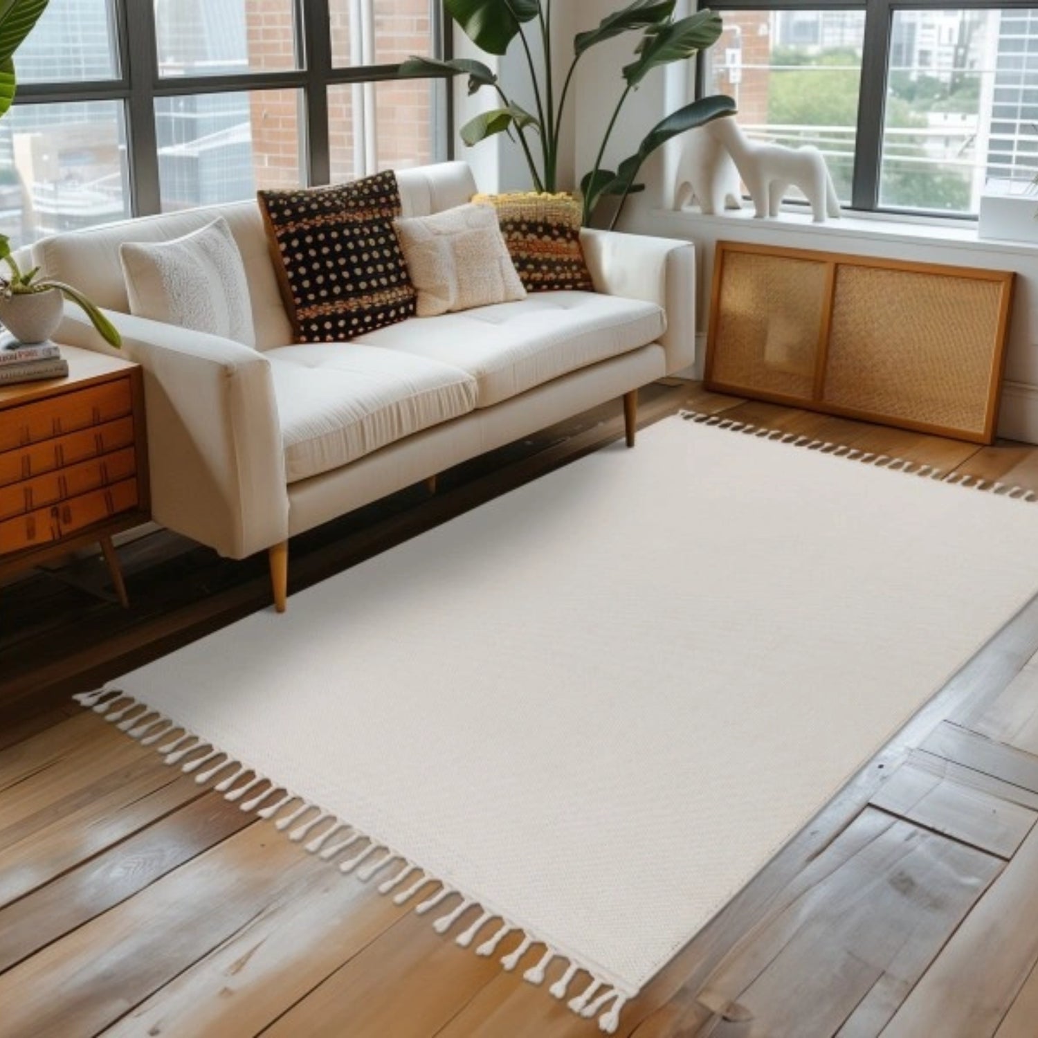 ervaren. Aan de randen bevindt zich een verfijnde afwerking met speelse franjes